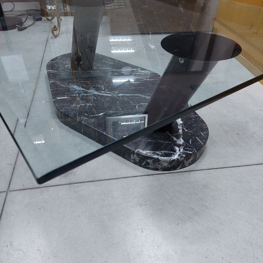 Tavolino Basso Cristallo/marmo Anni '70 Cm 120x100x41