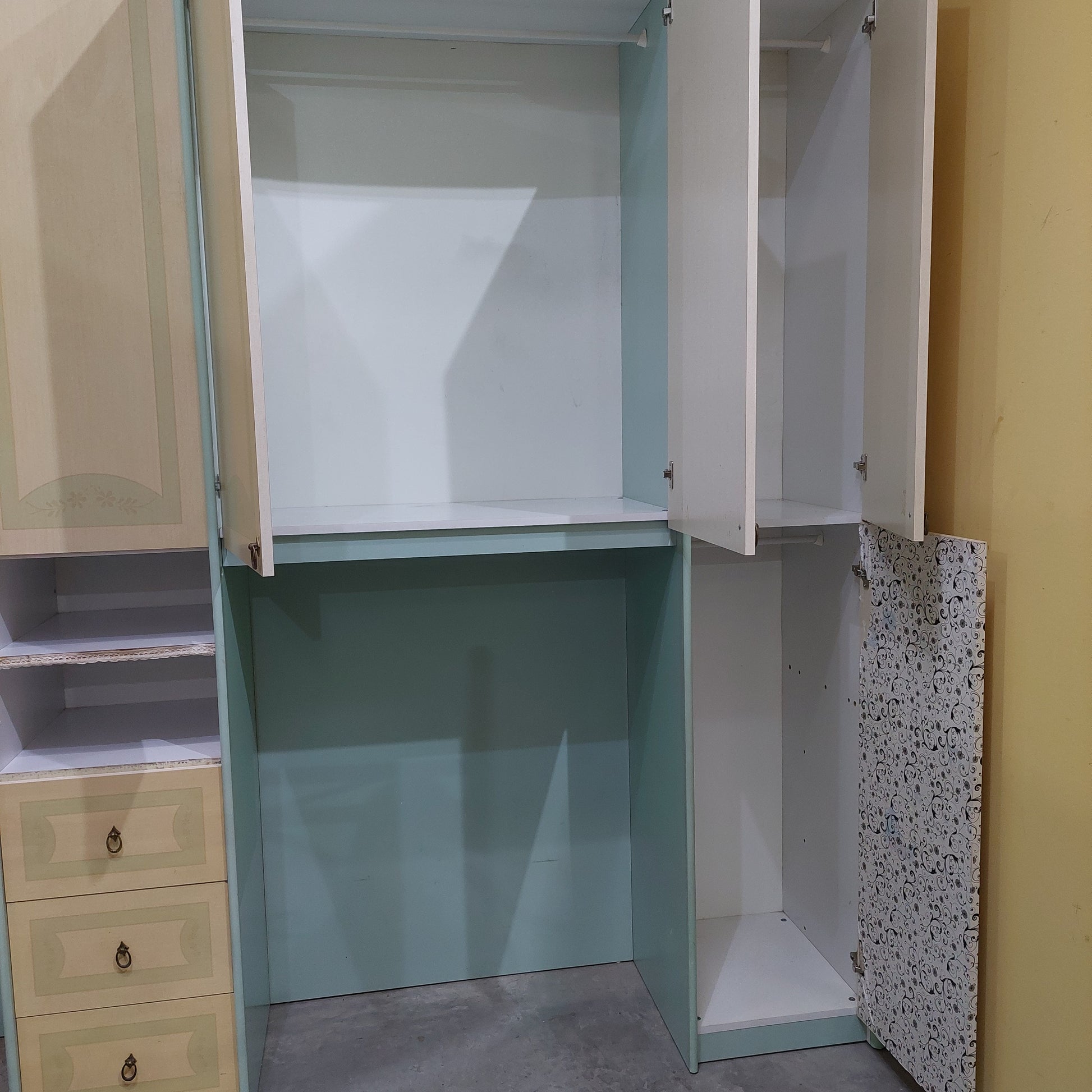 Cameretta Verde/beige 9/ante 3/cassetti Cm350x58x260h