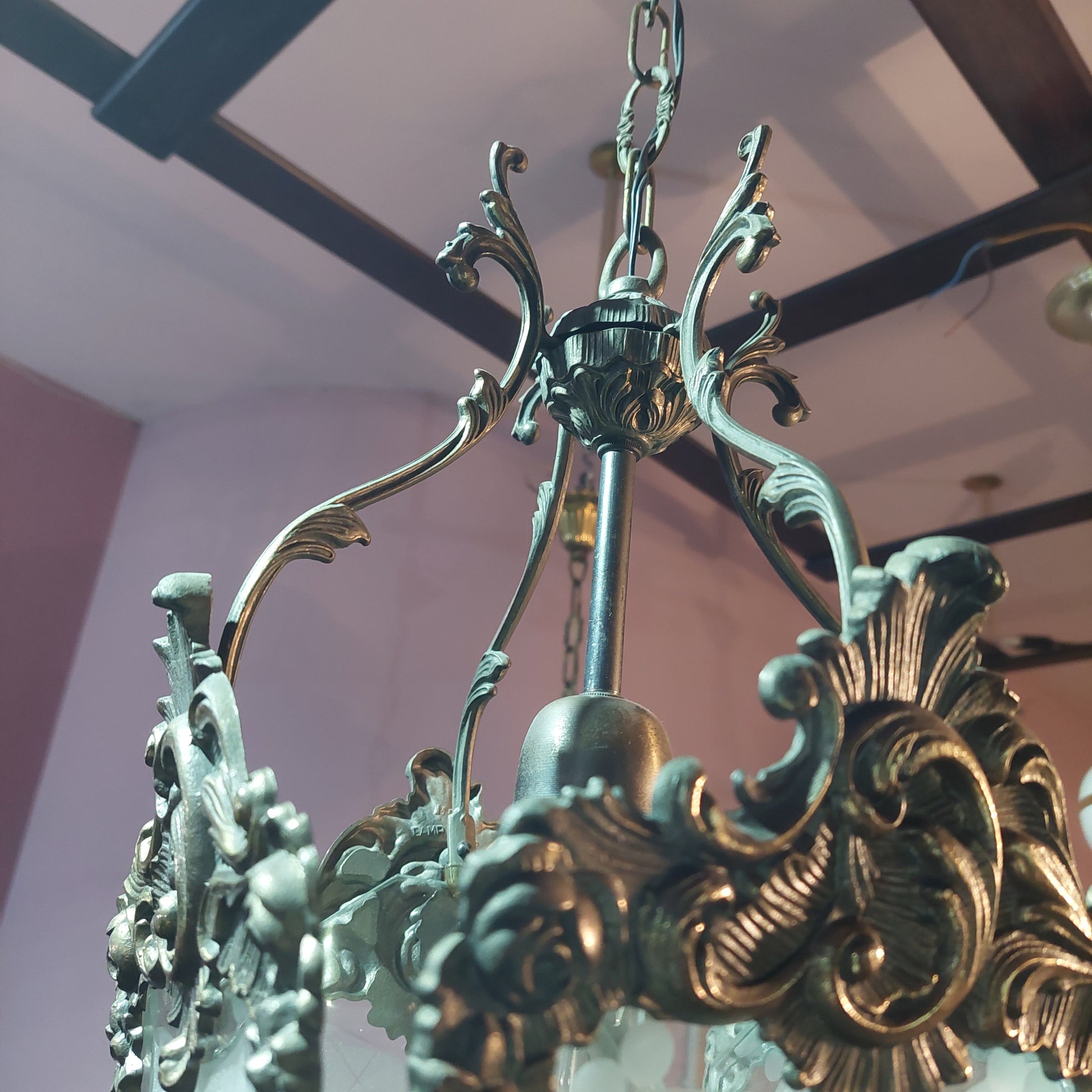 Lampadario "lanterna" ottone/vetro 1/luce