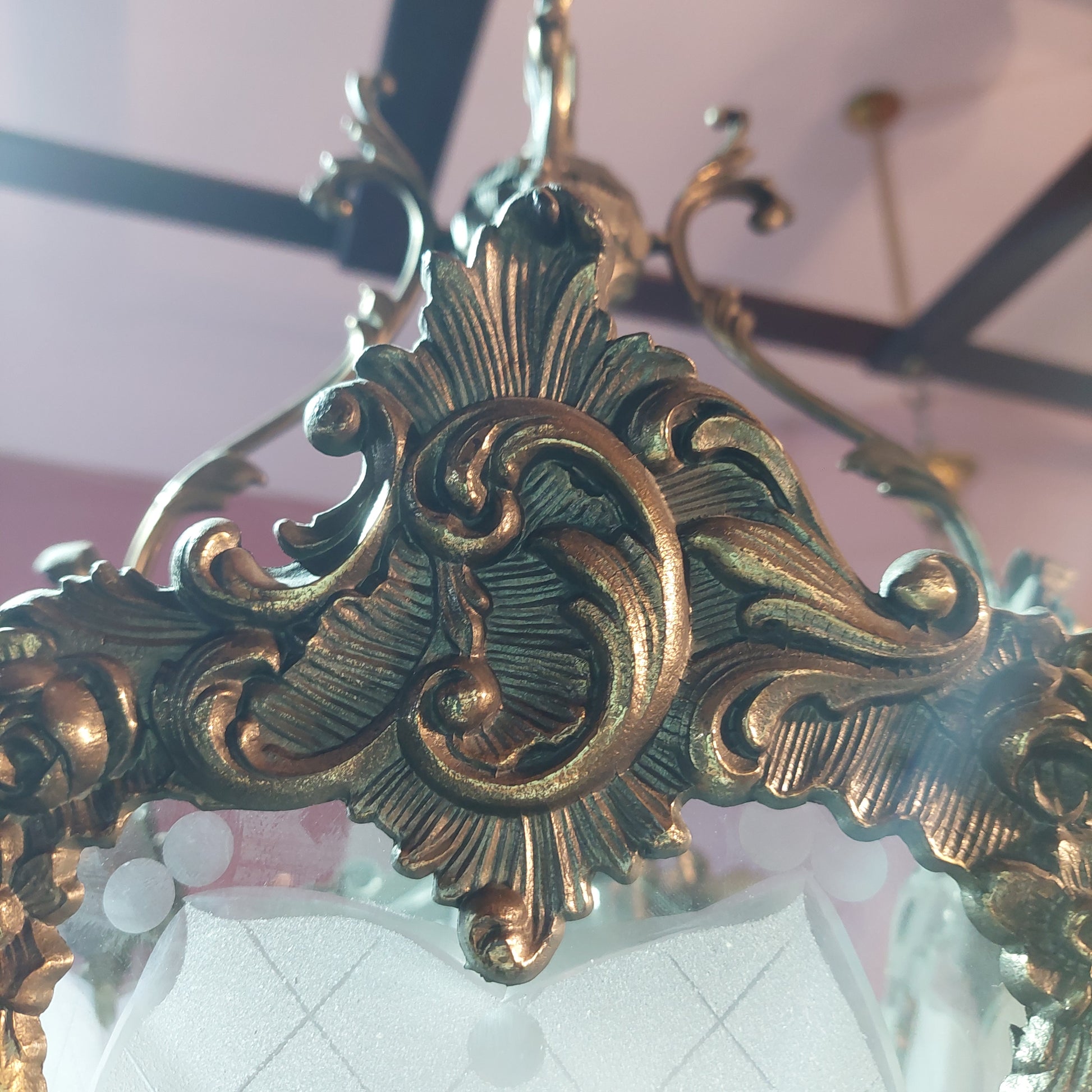 Lampadario "lanterna" Ottone/vetro 1/luce