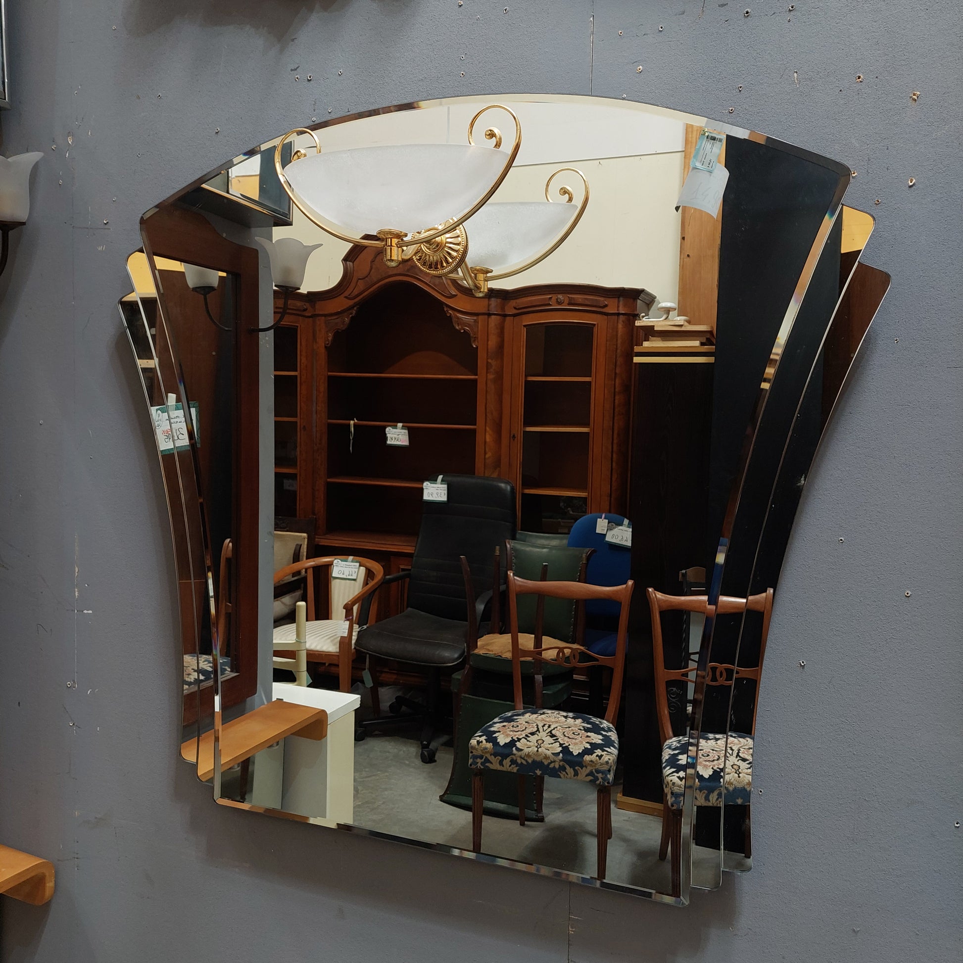SPECCHIO BAGNO VETRO MOLATO CON APPLIQUE OTTONE 1/LUCE