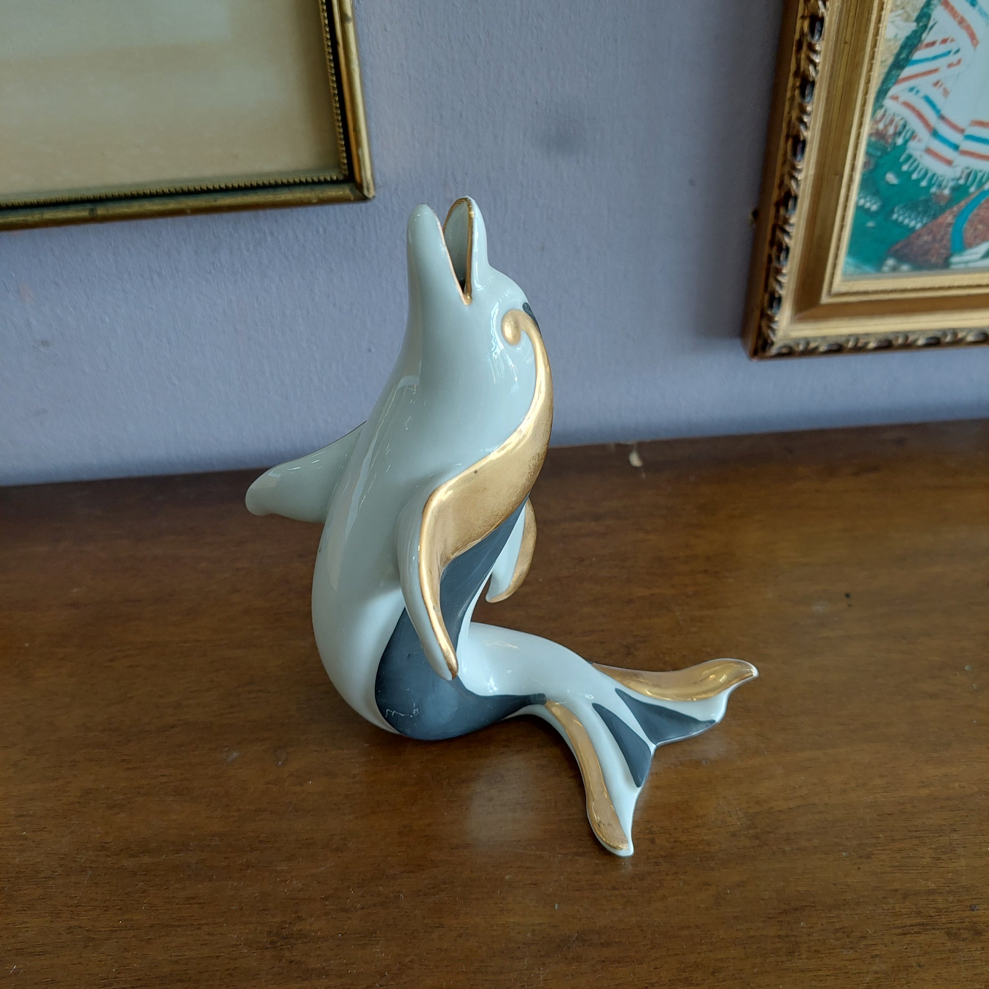 Vasetto monofiore statuetta delfino dipinto nero / oro h13