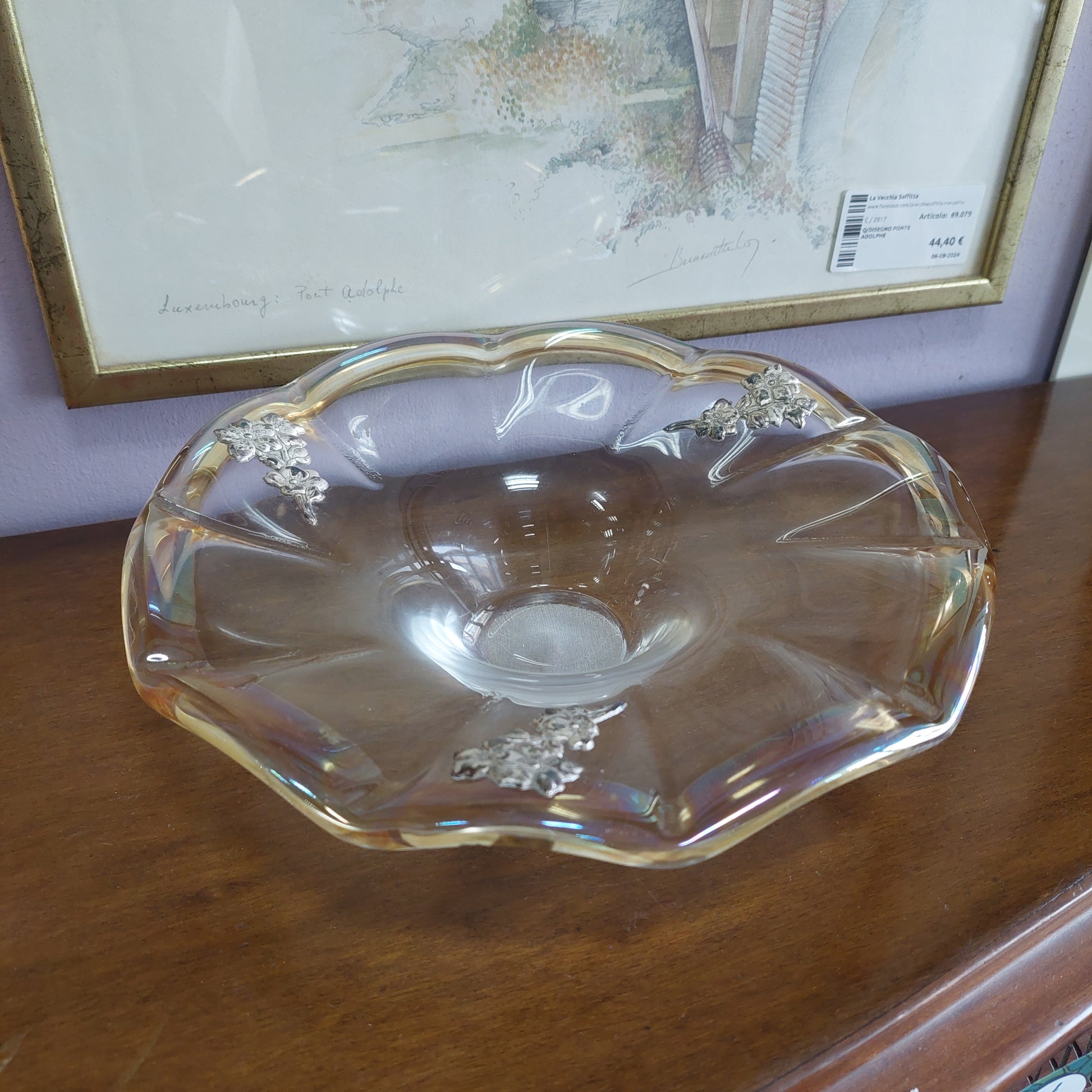 Alzatina Smerlata Vetro Di Murano Placchette Argento