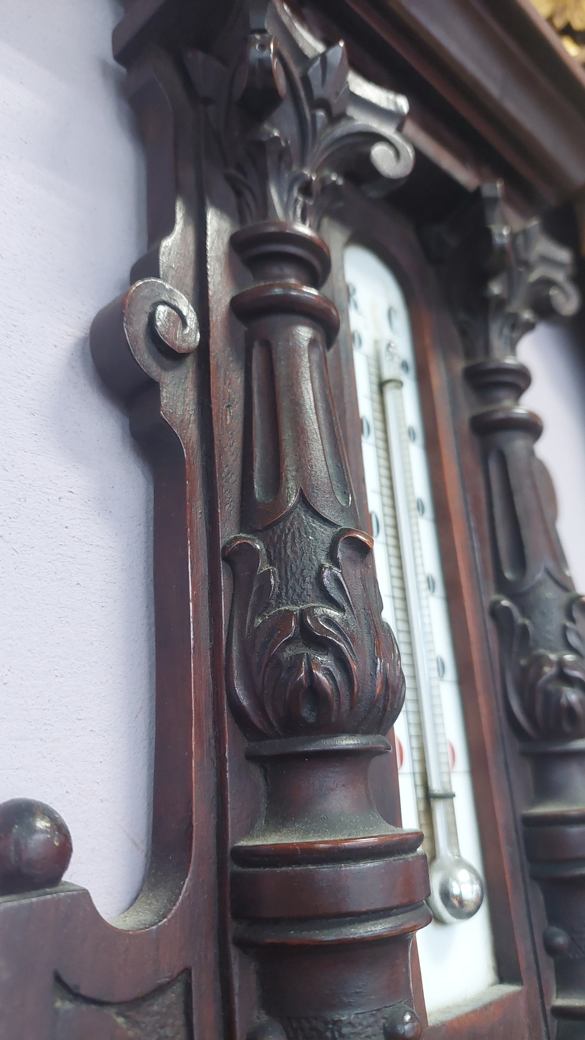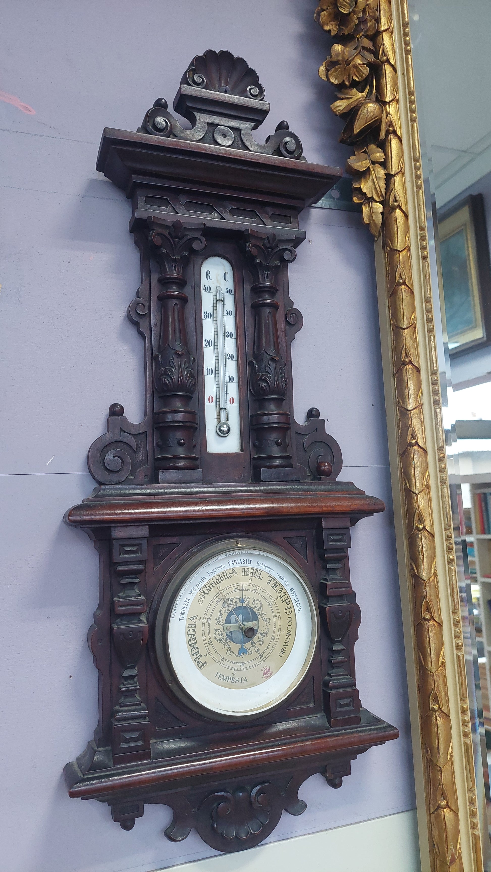 Barometro/termometro Antico Da Parete Legno Intagliato Cm28x70