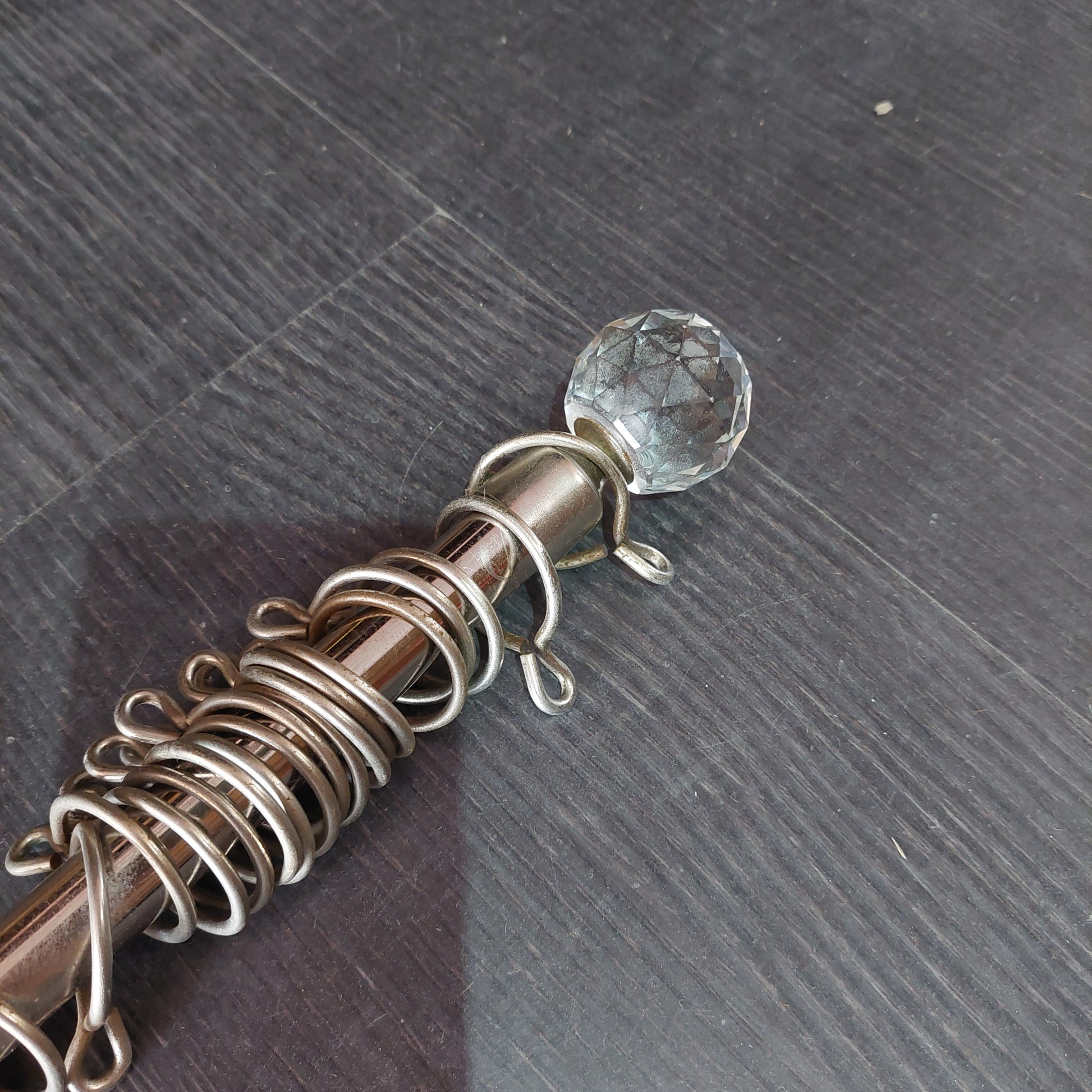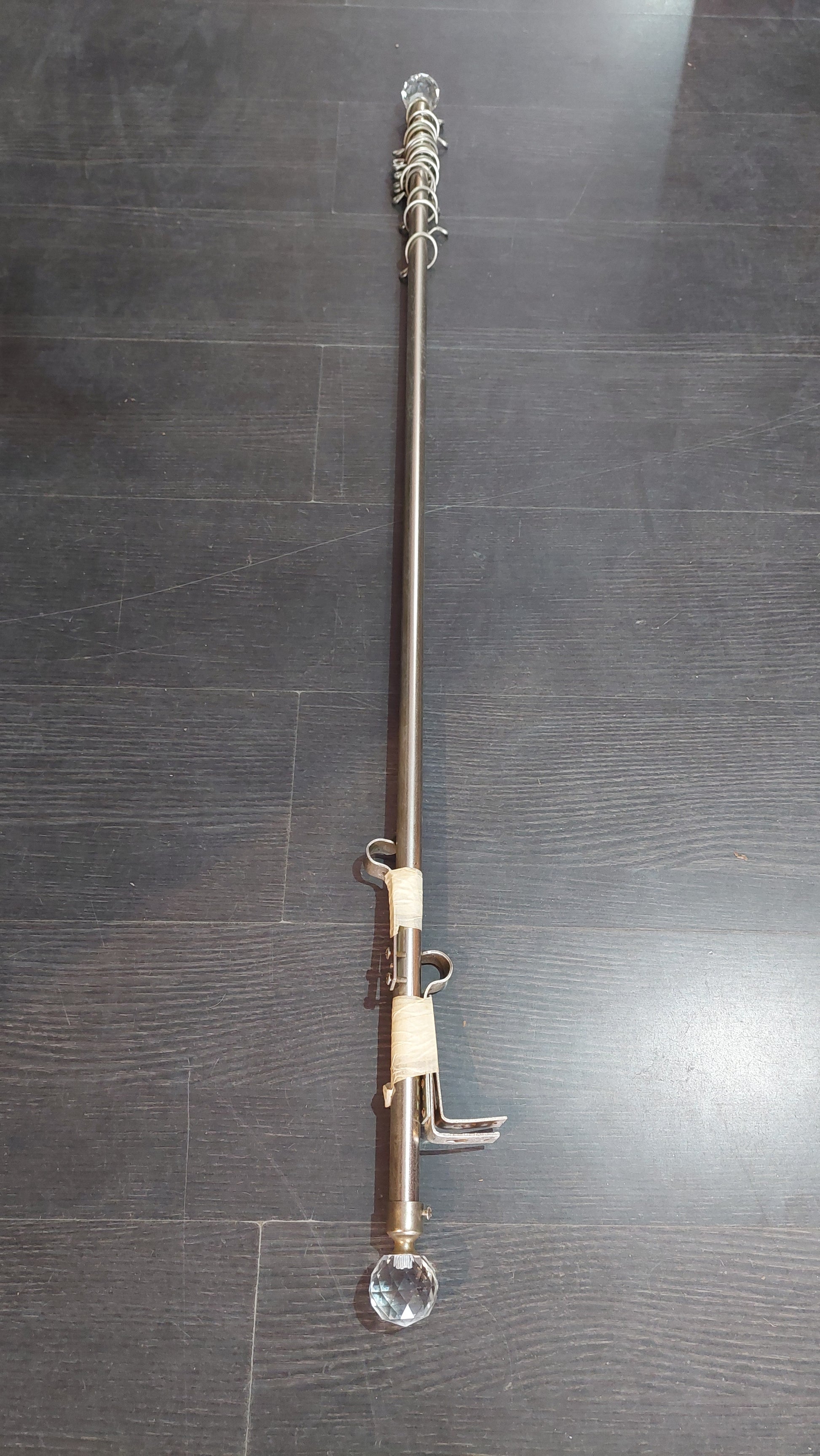 Bastone tenda in metallo con pomellini in vetro e anelli per tenda