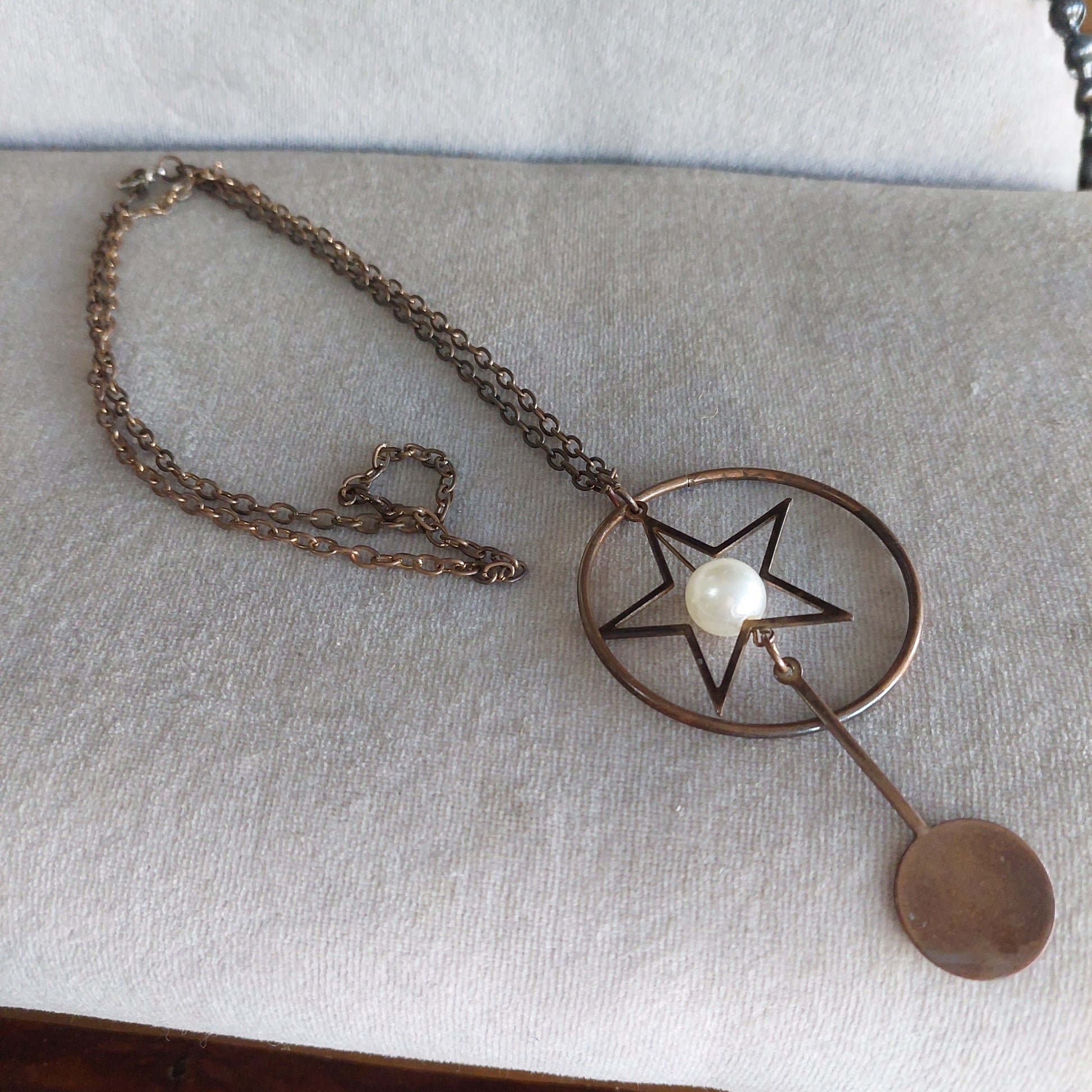 Collana rame con cerchio e stella con perla plastica