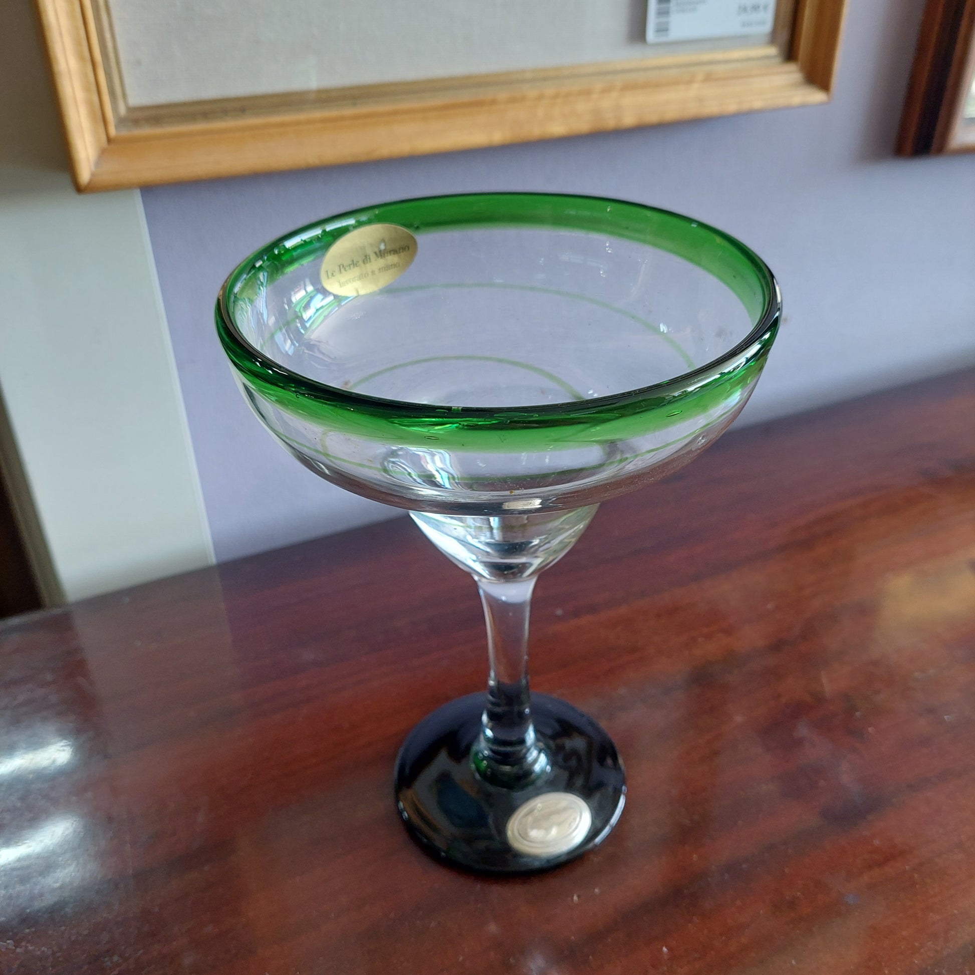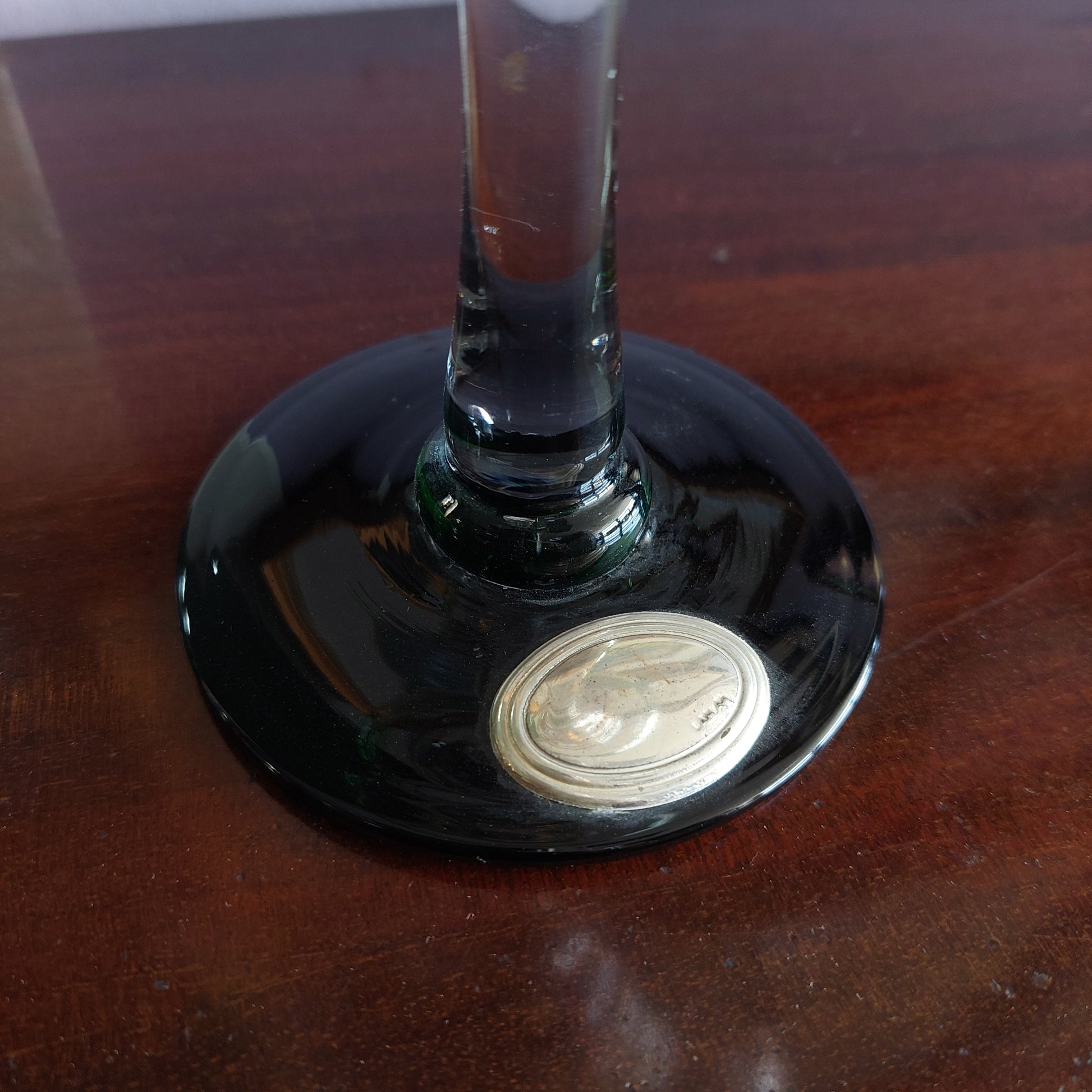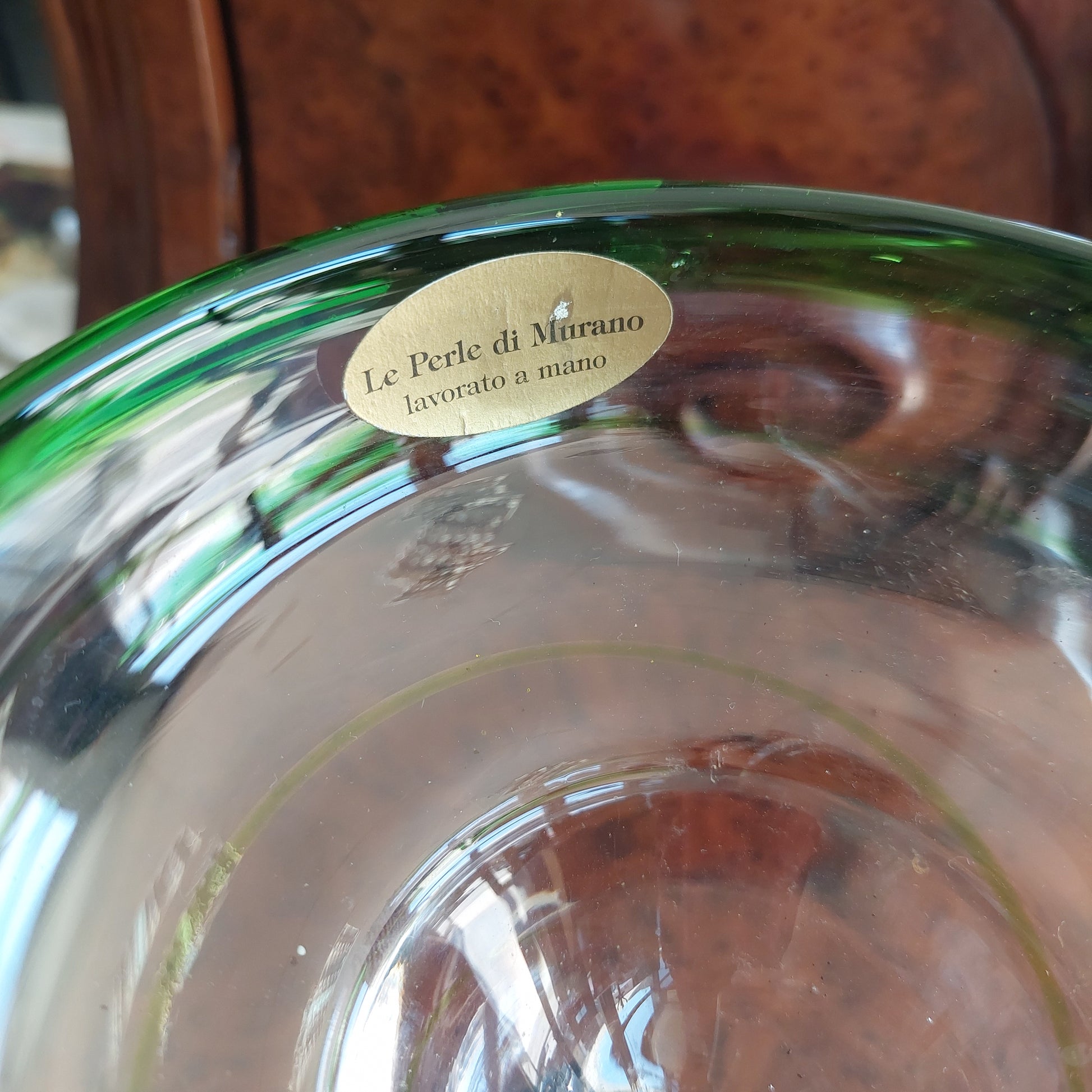 Calice vetro le Perle di murano, targhetta argento sulla base, sfumature verdi. d14x19h