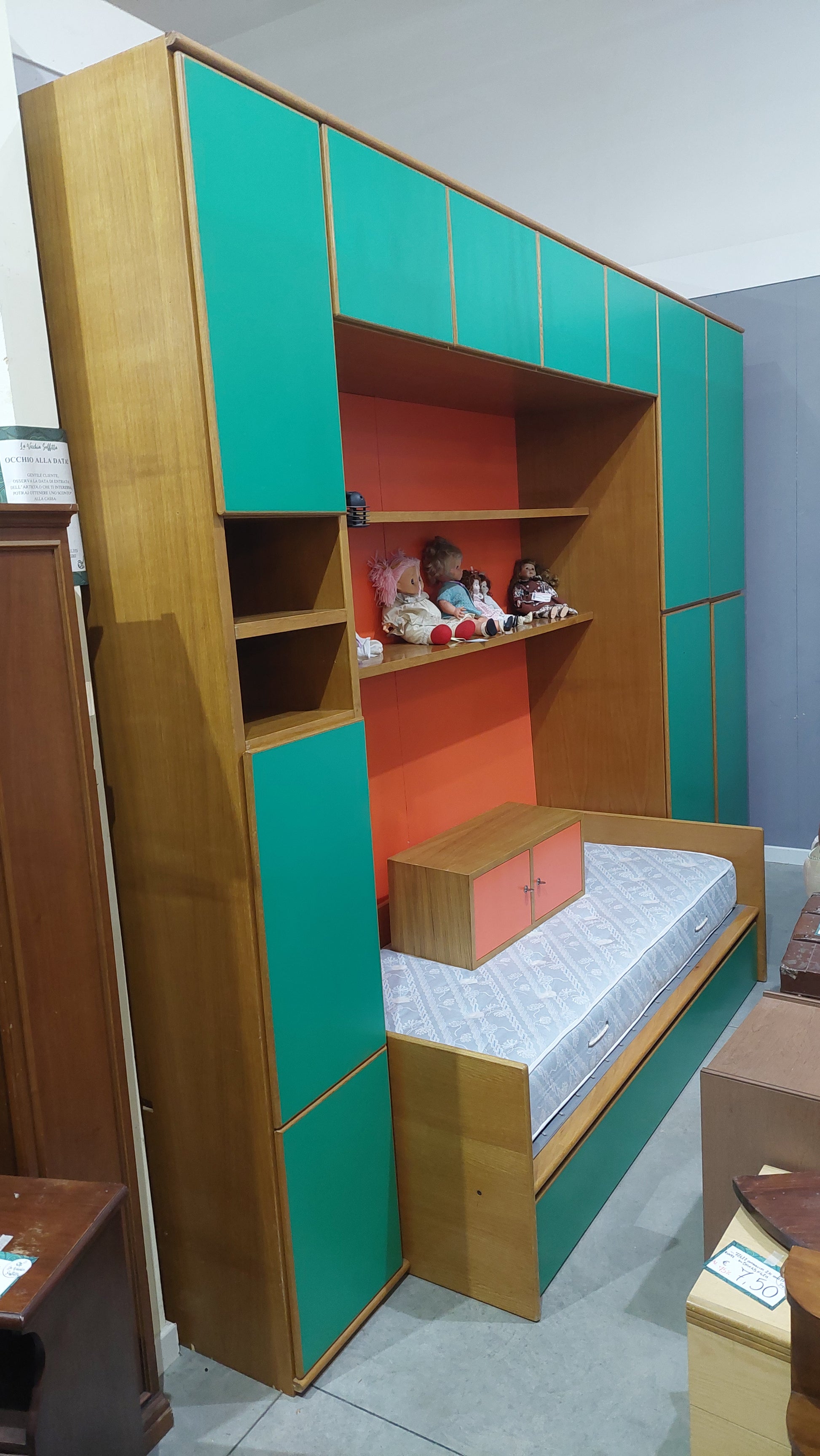 CAMERETTA VERDE/LEGNO FRASSINO 1 LETTO RETE METALLICA E UN CASSETTONE CONTENITORE SCORREVOLE