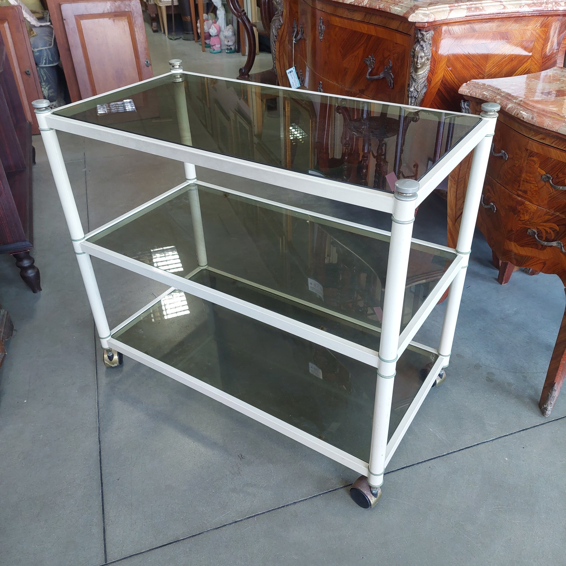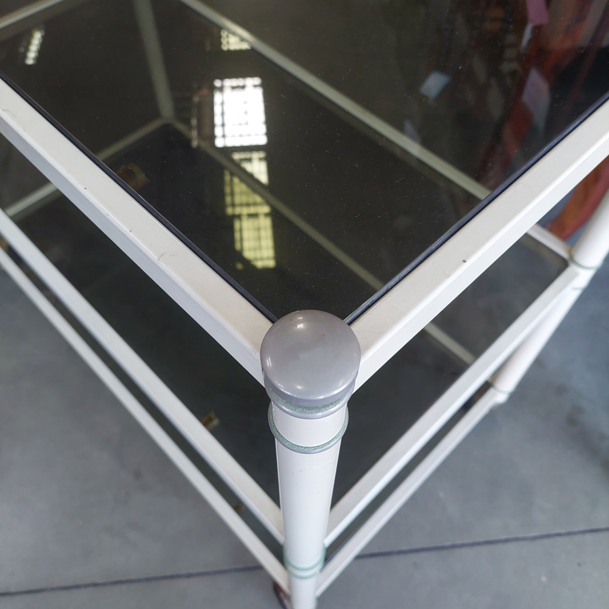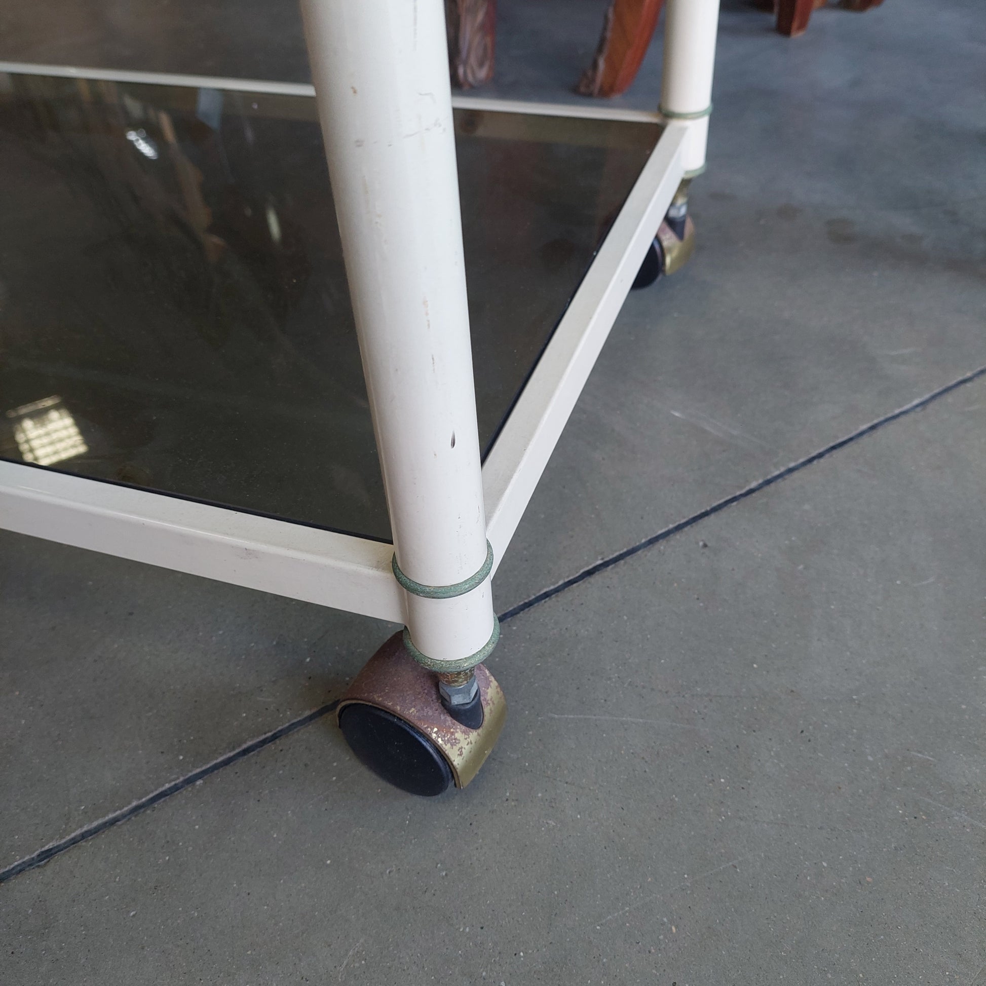 Carrellino Metallo Bianco/vetro Fumè Anni '70