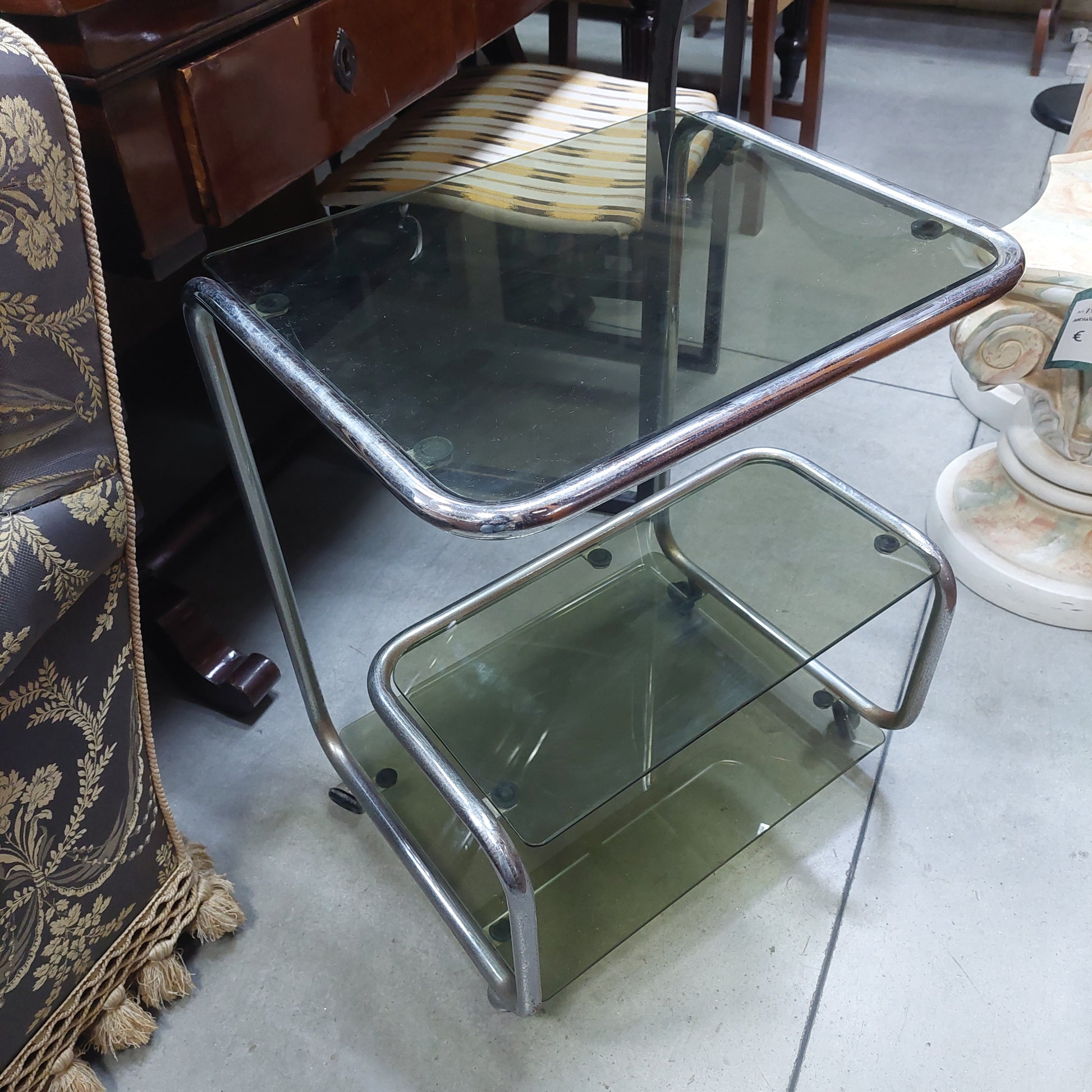 Carrellino Metallo Cromato/vetro Fumè Anni '70