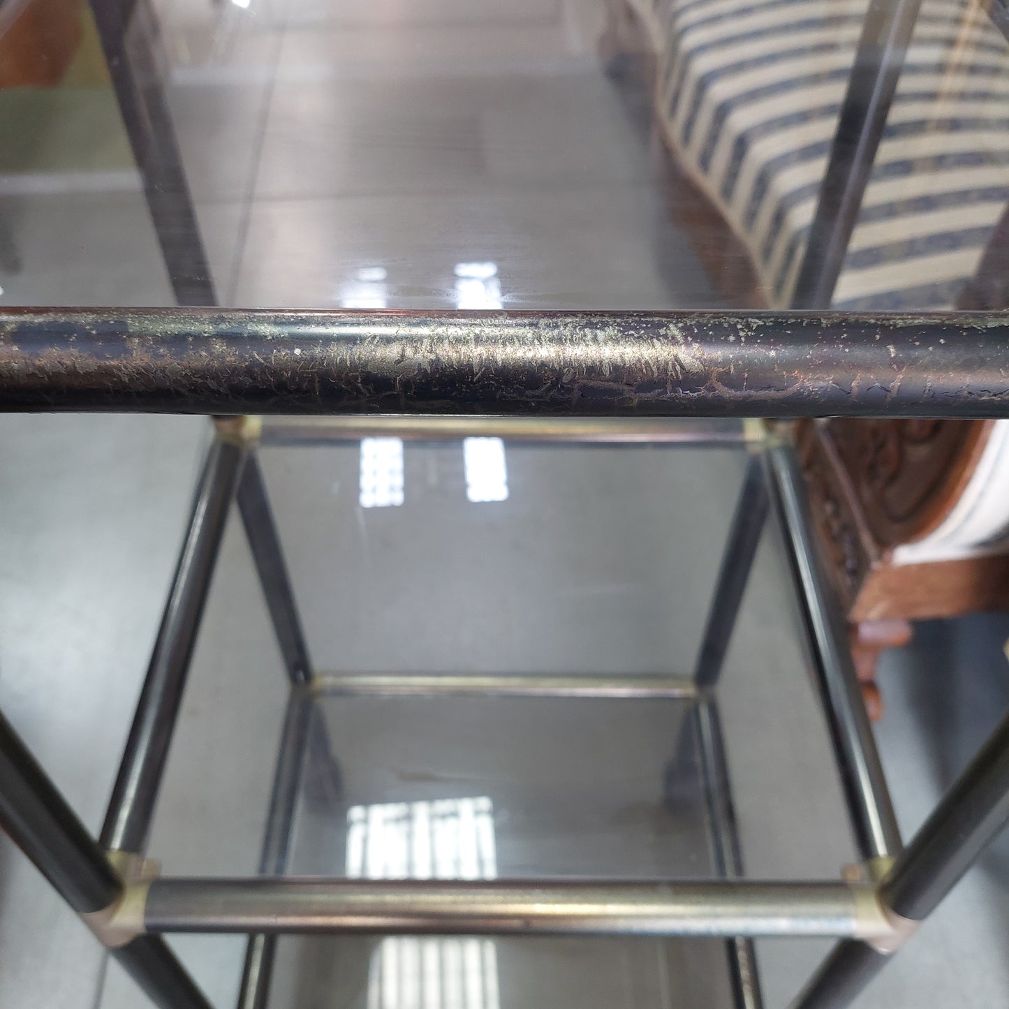 Carrellino Metallo/vetro Fume' 3/ripiani Anni '70 Cm41x36x88h