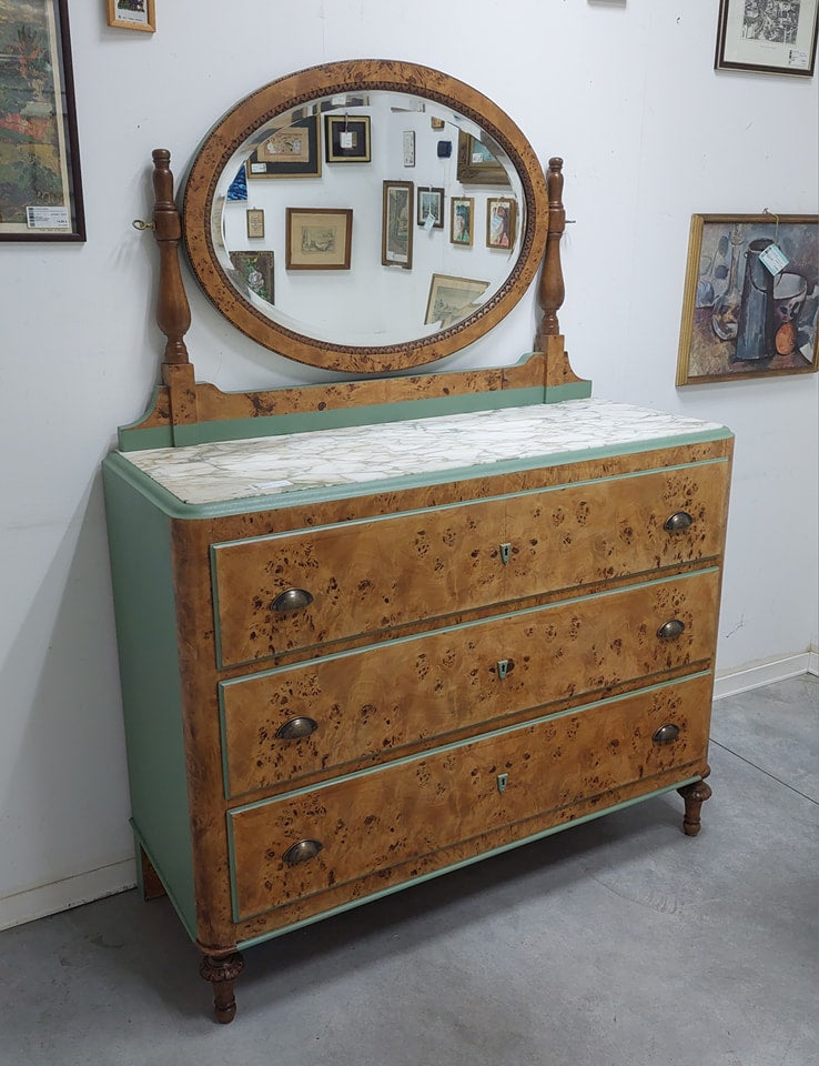 Cassettiera 3/c Con Specchio In Radica Cm126x50x180h