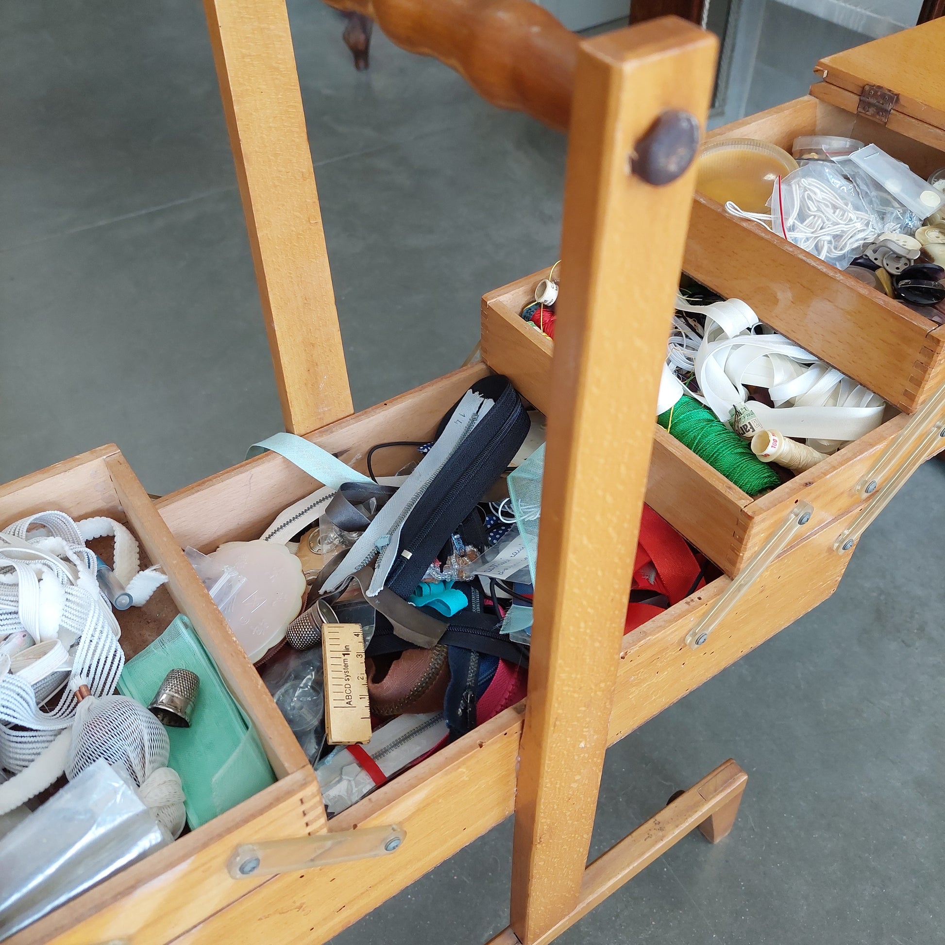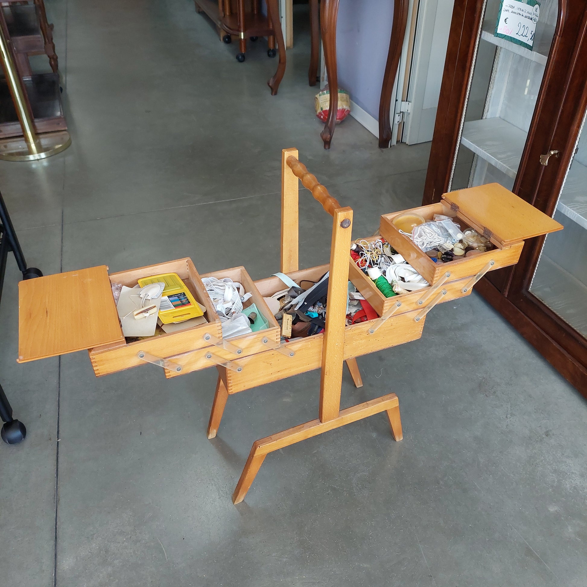 Cassettina Portalavoro In Legno Con Attrezzi Sartoria Cm40x21x68h