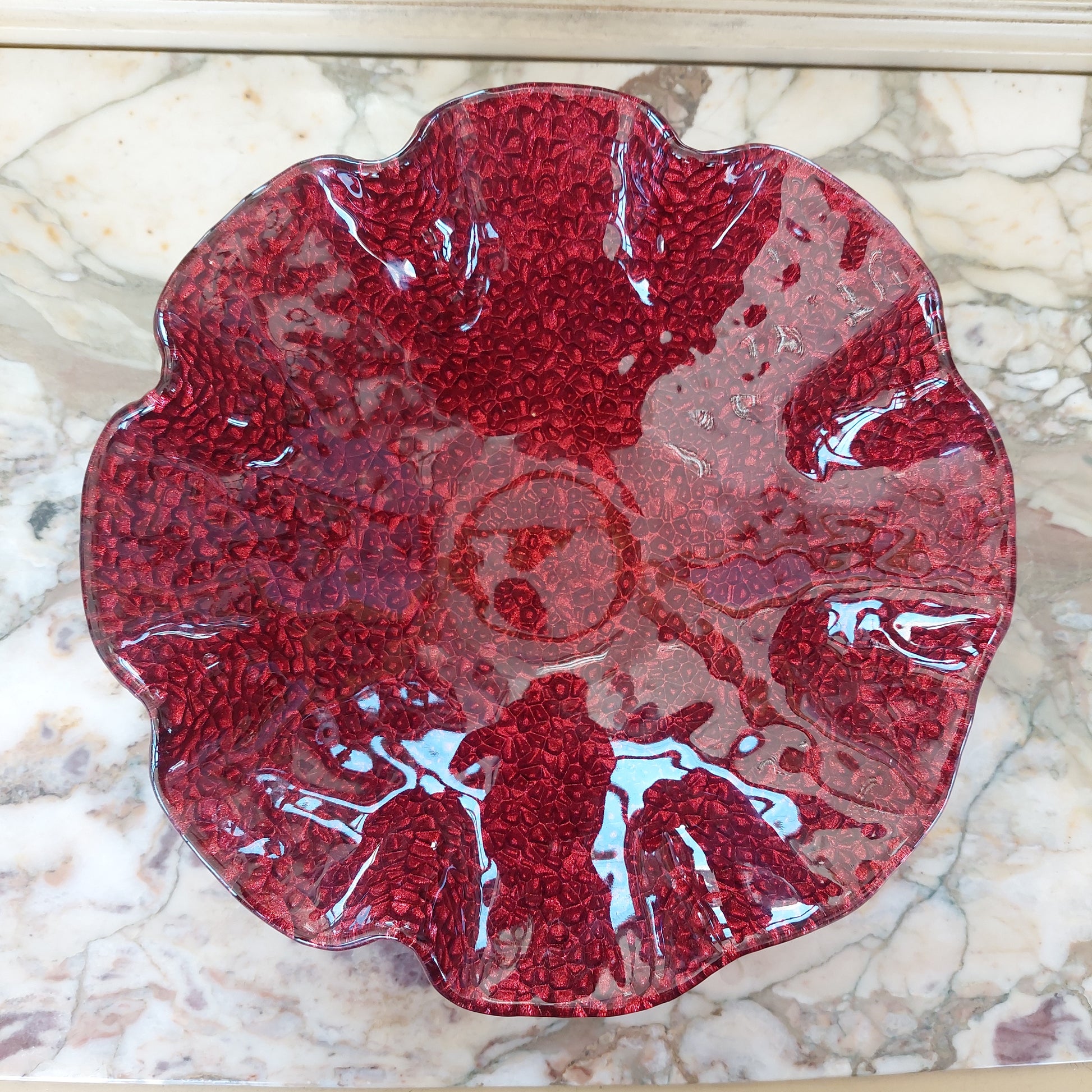CENTROTAVOLA VETRO SMERLATO ROSSO D25X8H