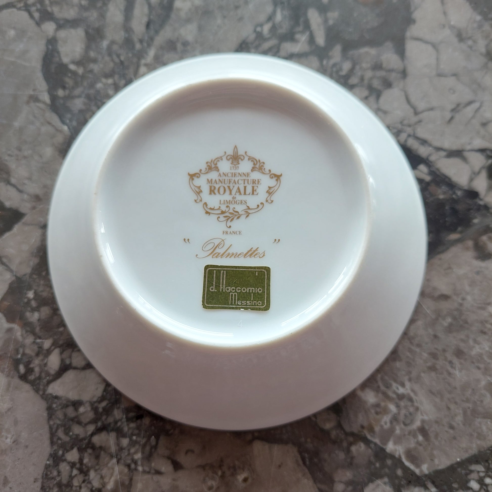Ciotolina Porcellana ancienne manufacture Royale de Limoges "palmettes" France Bordo Oro d13x3,5h