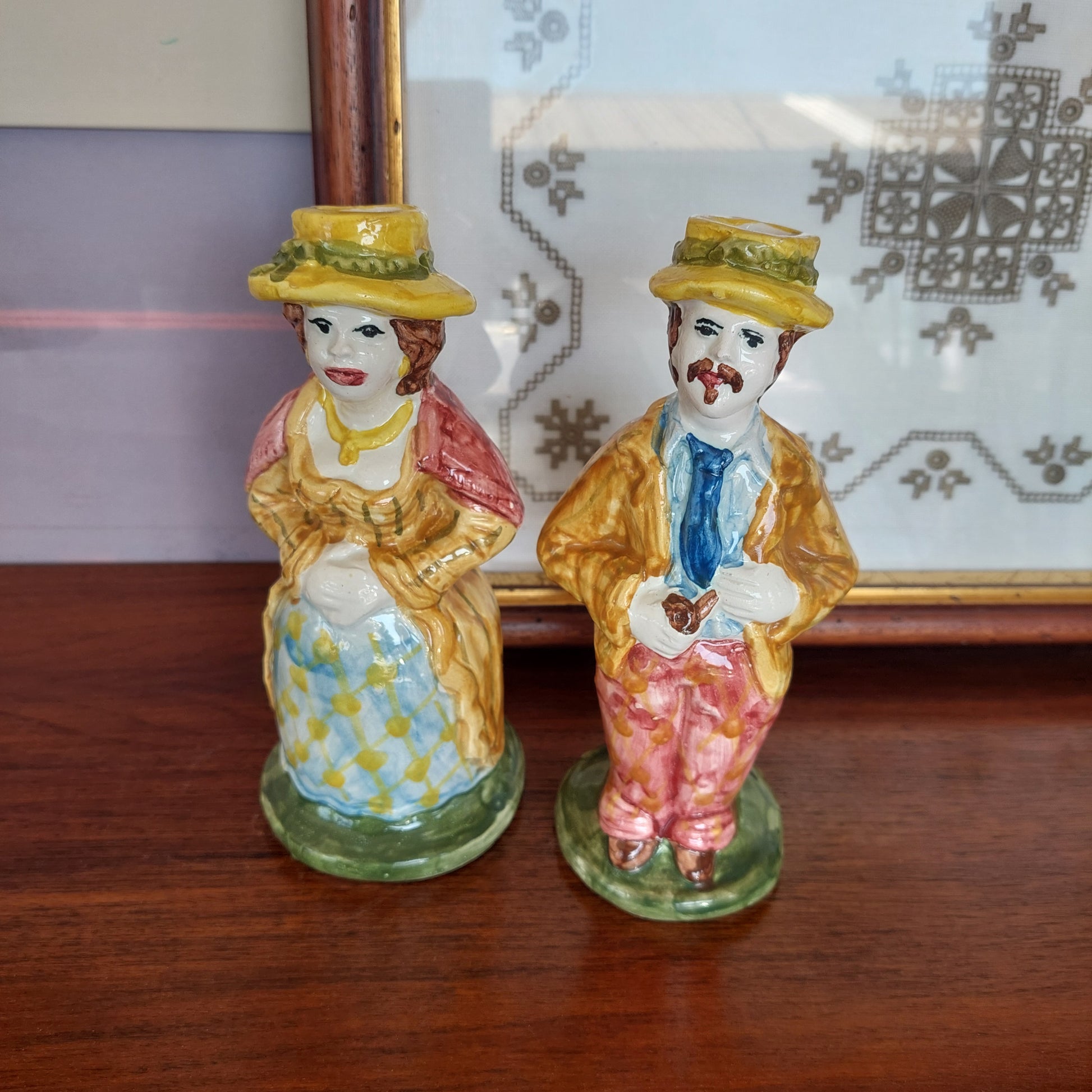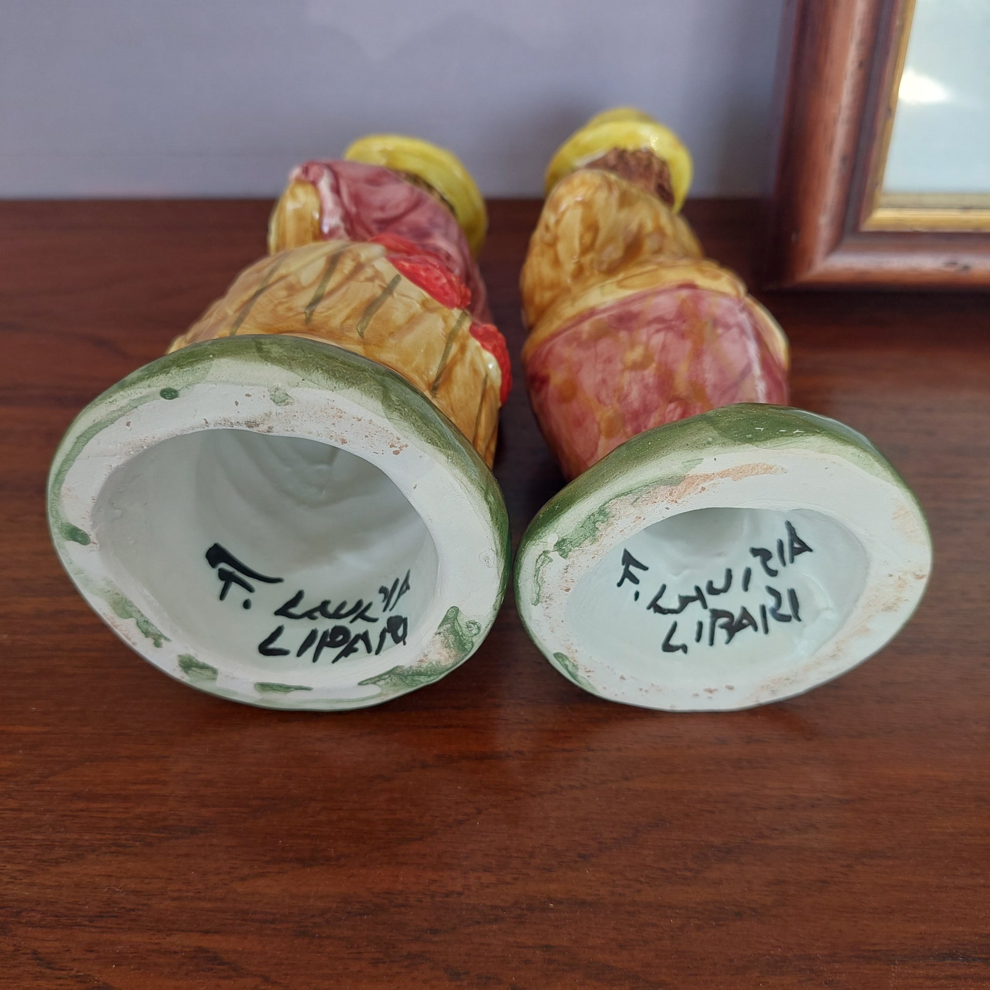 Coppia Portacandela Ceramica Siciliana F. Lauria Lipari