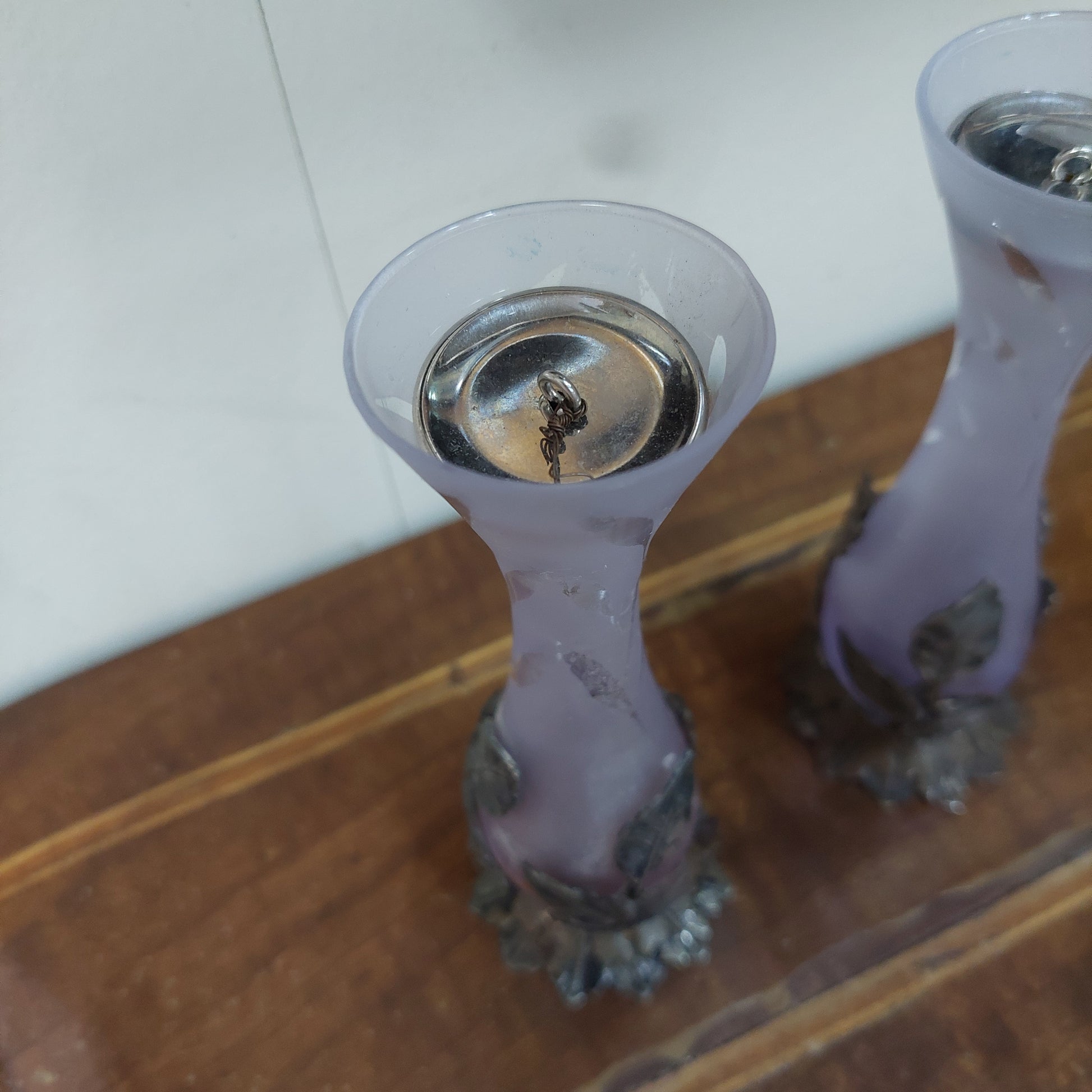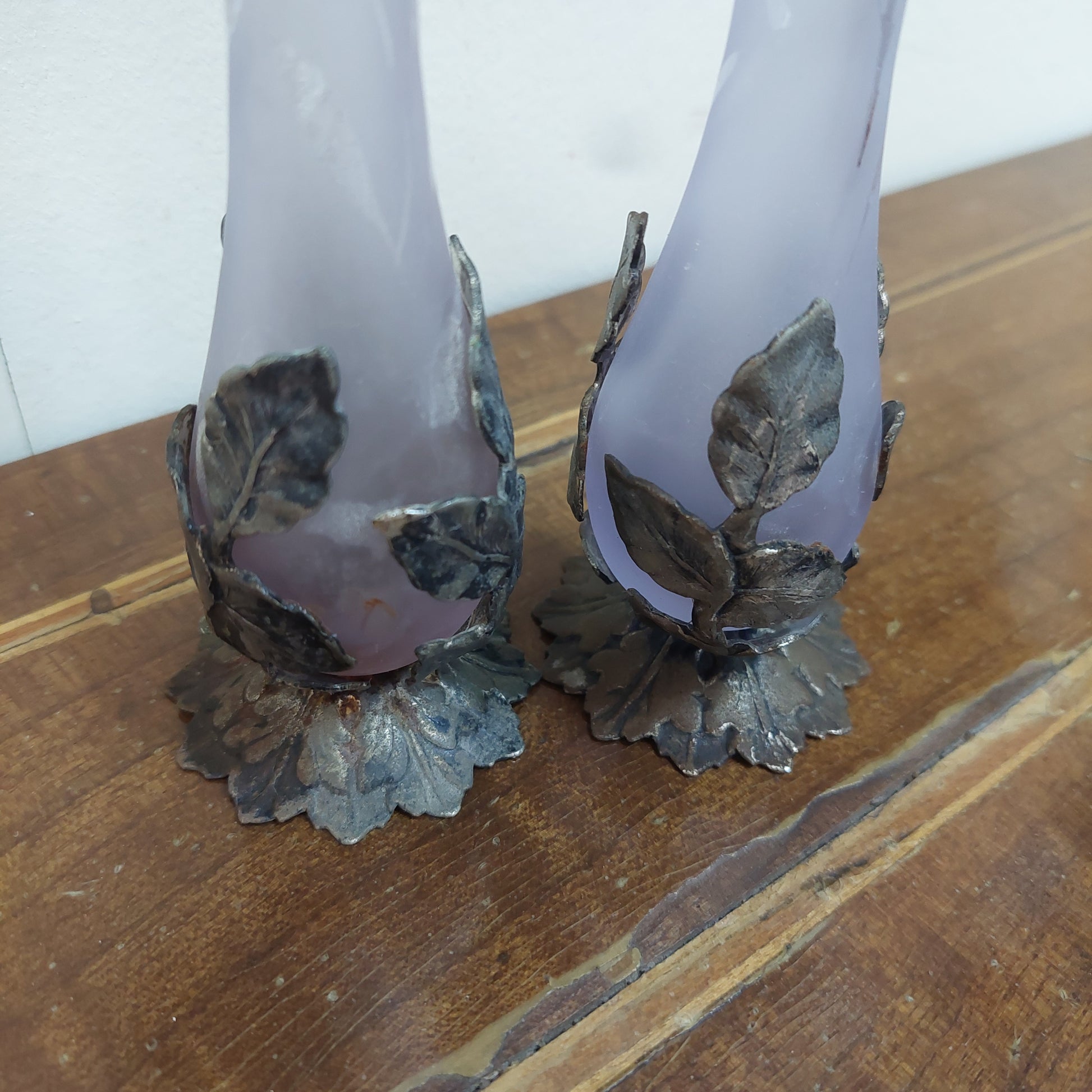 Coppia Vasetti Vetro Glicine Silver Plated Anni 50