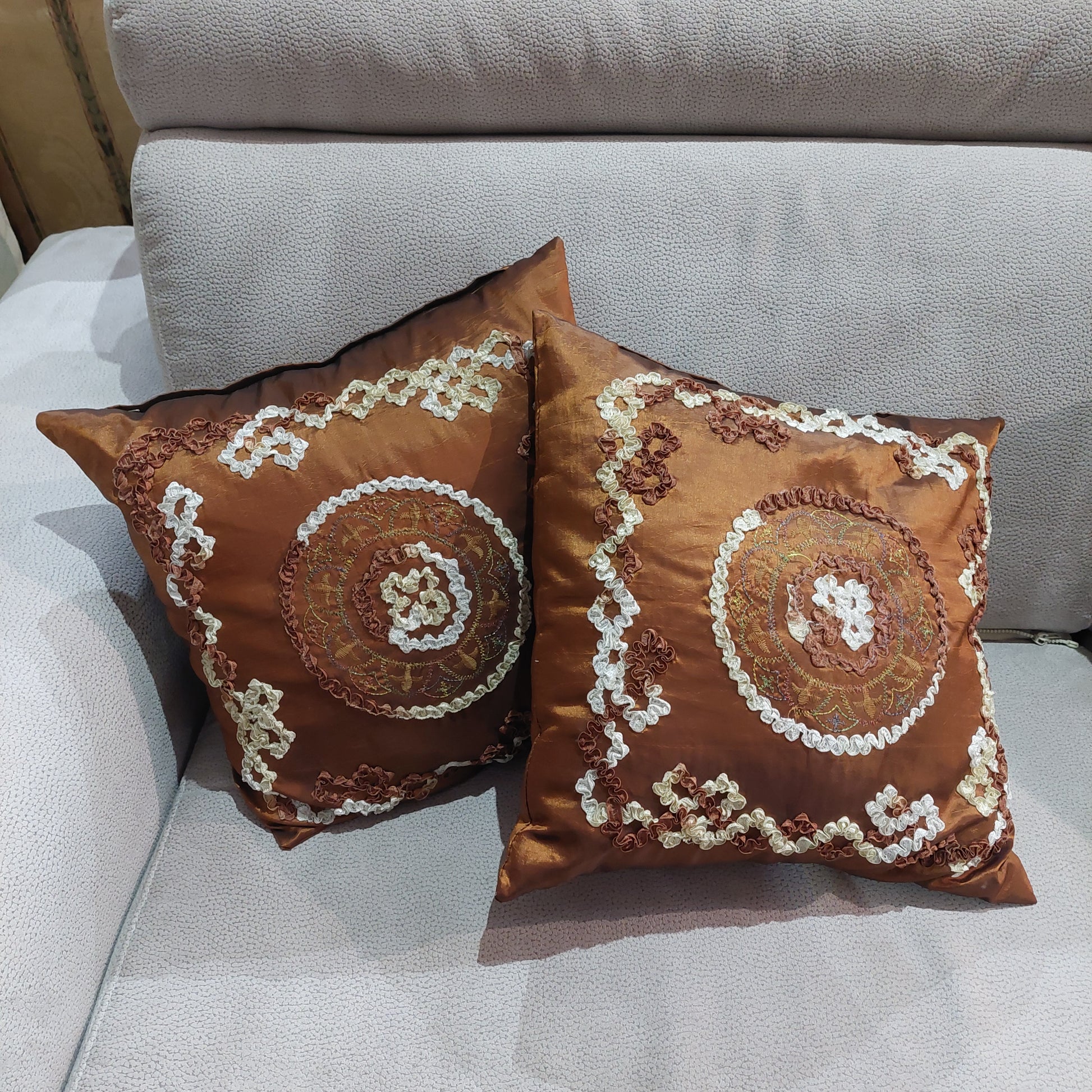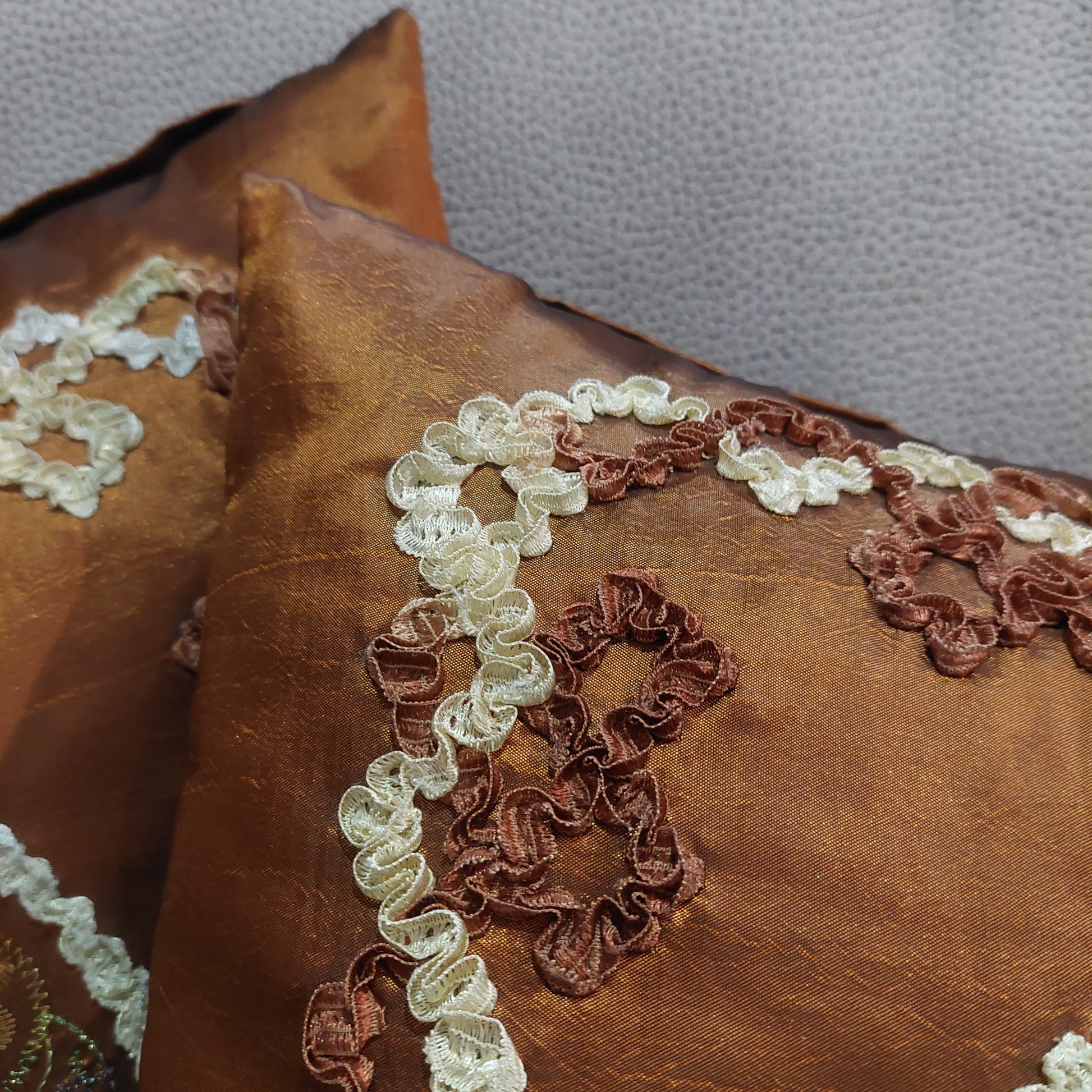 cuscino marrone con applicazioni