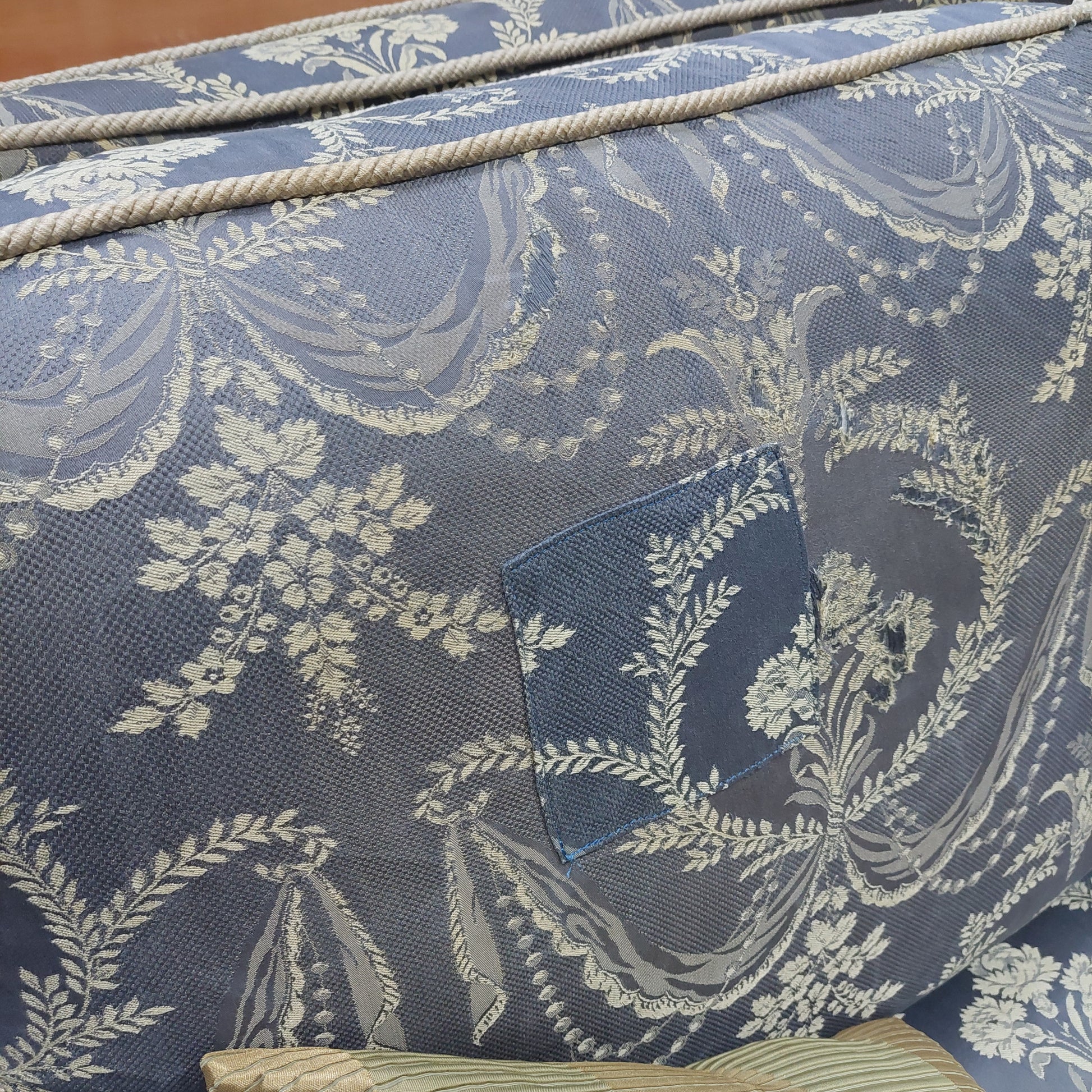 N.B. il tessuto è stato riparato tramite applicazioni di toppe
