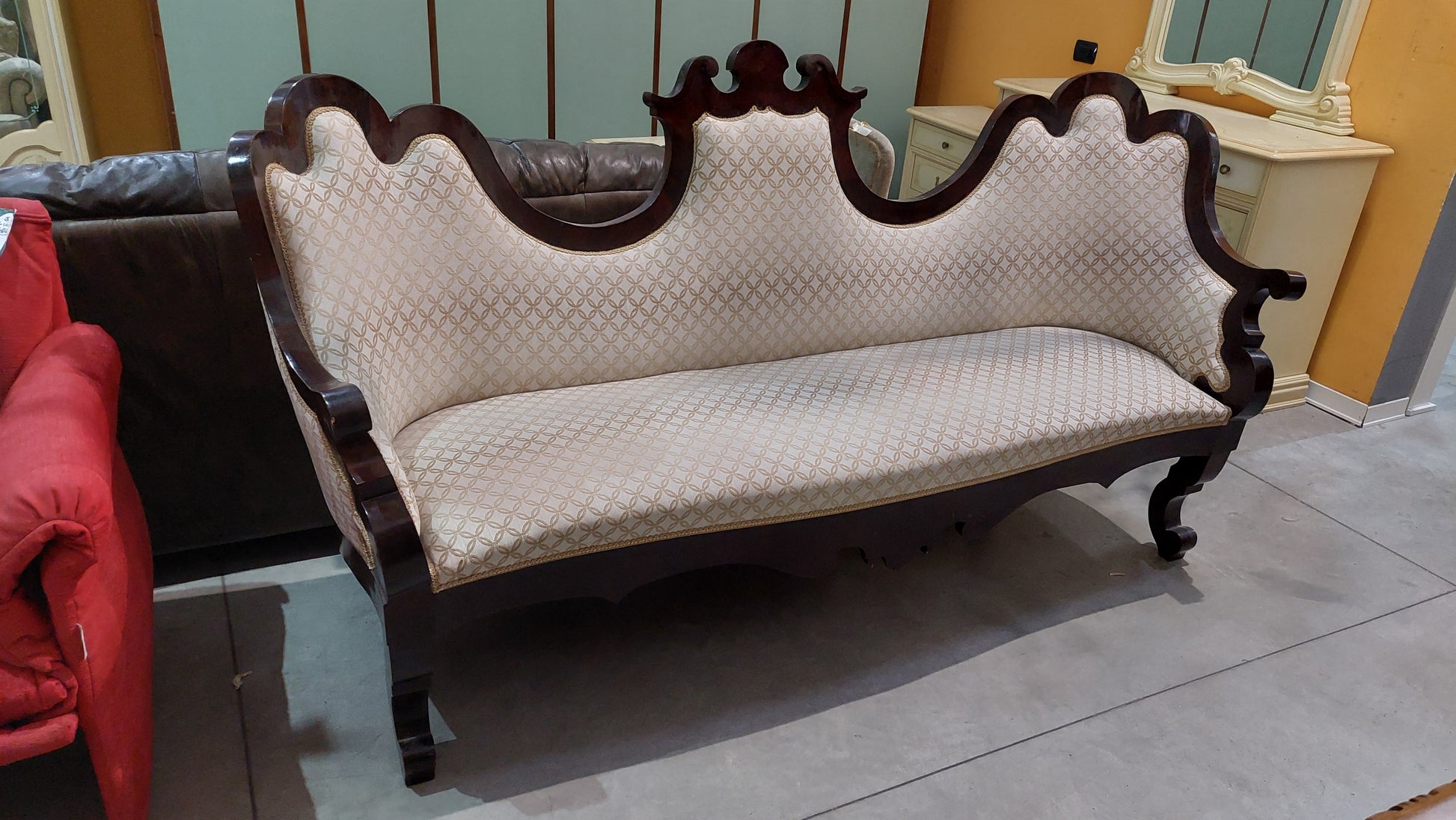 DIVANO LEGNO ANTICO STILE LUIGI FILIPPO 3 POSTI. CM208X60X111H