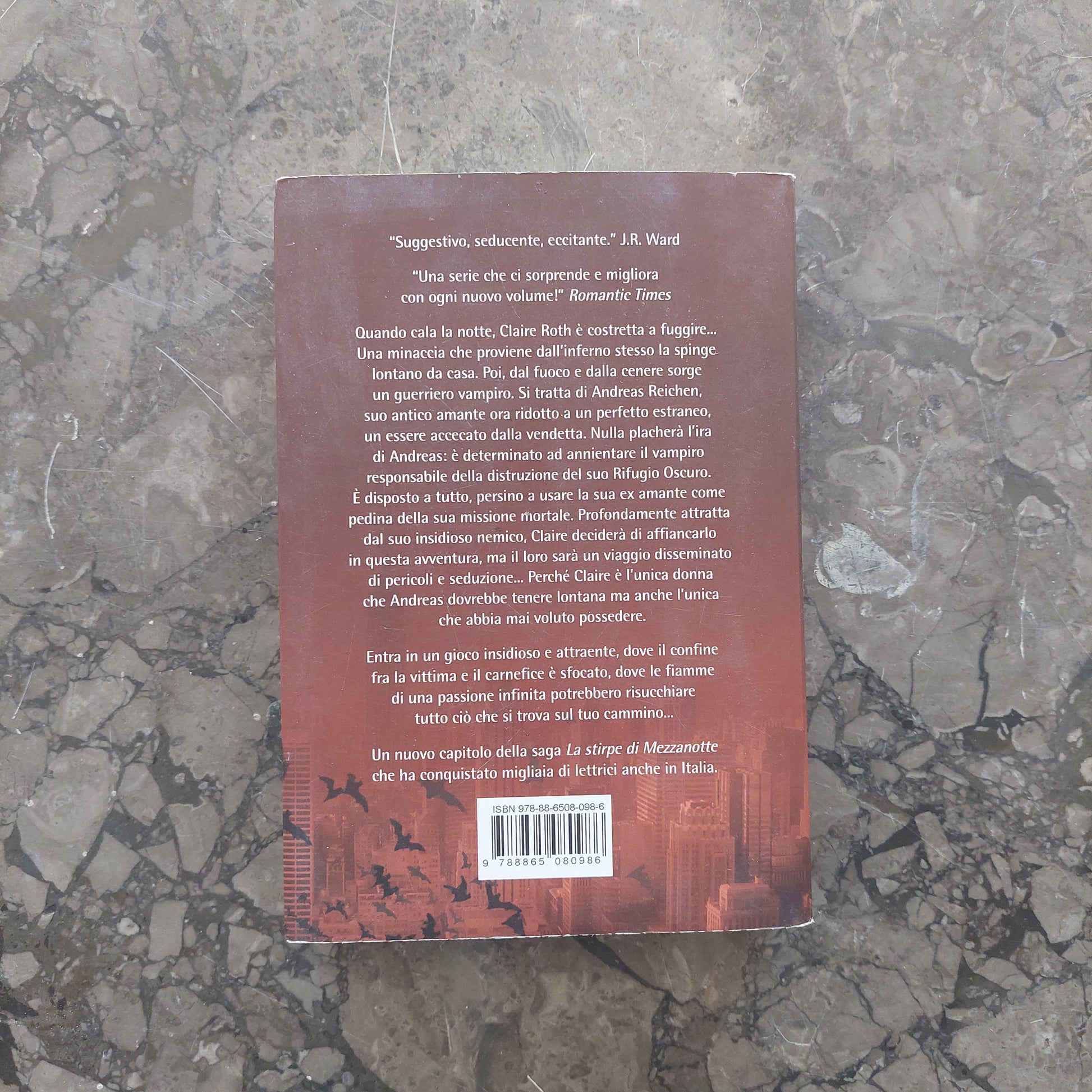 Quando cala la notte, Claire Roth è costretta a fuggire... Una minaccia che proviene dall'inferno stesso la spinge lontano da casa. Poi, dal fuoco e dalla cenere sorge un guerriero vampiro. Si tratta di Andreas Reichen, suo antico amante ora ridotto a un perfetto estraneo, un essere accecato dalla vendetta. Nulla placherà l'ira di Andreas: è determinato ad annientare il vampiro responsabile della distruzione del suo Rifugio Oscuro. È disposto a tutto, persino a usare la sua ex amante come pedina della sua missione mortale. Profondamente attratta dal suo insidioso nemico, Claire deciderà di affiancarlo in questa avventura, ma il loro sarà un viaggio disseminato di pericoli e seduzione... Perché Claire è l'unica donna che Andreas dovrebbe tenere lontana ma anche l'unica che abbia mai voluto possedere. Entra in un gioco insidioso e attraente, dove il confine fra la vittima e il carnefice è sfocato, dove le fiamme di una passione infinita potrebbero risucchiare tutto ciò che si trova sul tuo cammino... Un nuovo capitolo della saga "La stirpe di Mezzanotte".