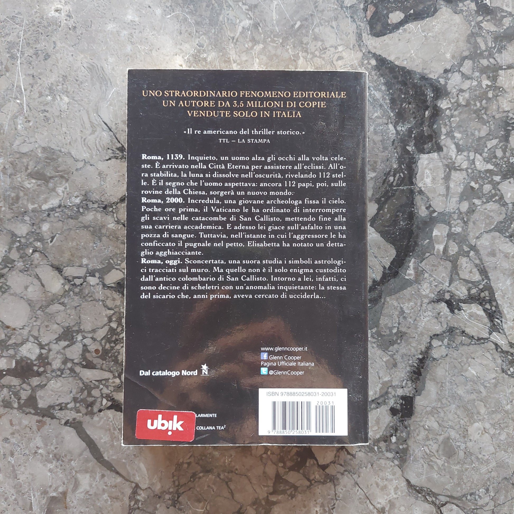 «Appare sempre più evidente che il nuovo millennio ha un cuore macabro. Glenn Cooper lo ha intuito prima e meglio di tutti. E sa raccontarcelo.» la Lettura - Corriere della Sera - Antonio D'Orrico «Cooper non permette al lettore di distrarsi. E anche quando arriva alla parola fine, non fa nulla per sciogliere il dubbio che le sue profezie possano avere un solido e iettatorio fondamento.» Corriere della Sera - Ranieri Polese Roma, 1139. Inquieto, un uomo alza gli occhi alla volta celeste. Seguendo le indicazioni dei suoi predecessori, è arrivato nella Città Eterna per assistere all'eclissi che mostrerà un allineamento astrale unico. All'ora stabilita, la luna a poco a poco si dissolve nell'oscurità, rivelando 112 stelle. È il segno che l'uomo aspettava: ancora 112 papi, poi, sulle rovine della Chiesa, sorgerà un nuovo mondo. Roma, 2000. Incredula, una giovane archeologa fissa il cielo. Poche ore prima, il Vaticano le ha ordinato d'interrompere gli scavi nelle catacombe di San Callisto, mettendo così fine alla sua carriera accademica. E adesso lei giace sull'asfalto, in una pozza di sangue. Tuttavia, nell'istante in cui l'aggressore le ha conficcato il pugnale nel petto, Elisabetta ha notato un dettaglio agghiacciante. Un dettaglio impossibile da dimenticare. Roma, oggi. Sconcertata, una suora studia i simboli astrologici tracciati sul muro. Ma quello non è il solo enigma custodito dall'antico colombario di San Callisto. Intorno a lei, infatti, ci sono decine di scheletri caratterizzati da un'anomalia inquietante: la stessa anomalia del sicario che, anni prima, aveva cercato di ucciderla. Decisa a far luce sul mistero, suor Elisabetta entra in possesso di un rarissimo esemplare del Dottor Faust di Marlowe e intuisce che quei versi sono il codice per svelare il cerchio diabolico che lega passato, presente e futuro. Perché il papa è morto, il conclave è alle porte e la profezia sta per compiersi...