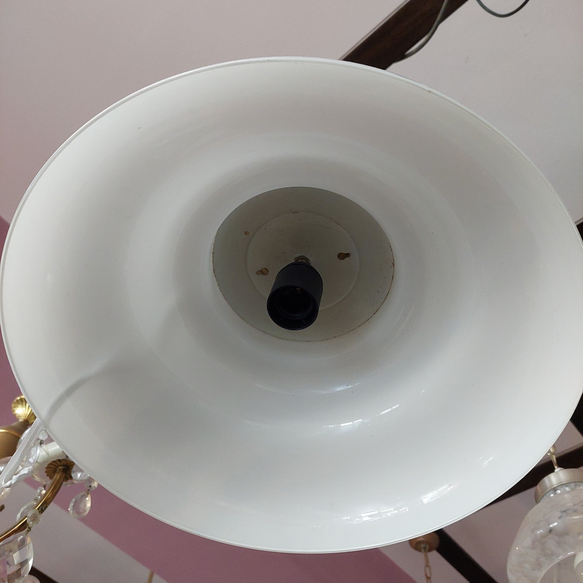 Lampadario Legno/cupola Vetro Opalino Vintage 1/l