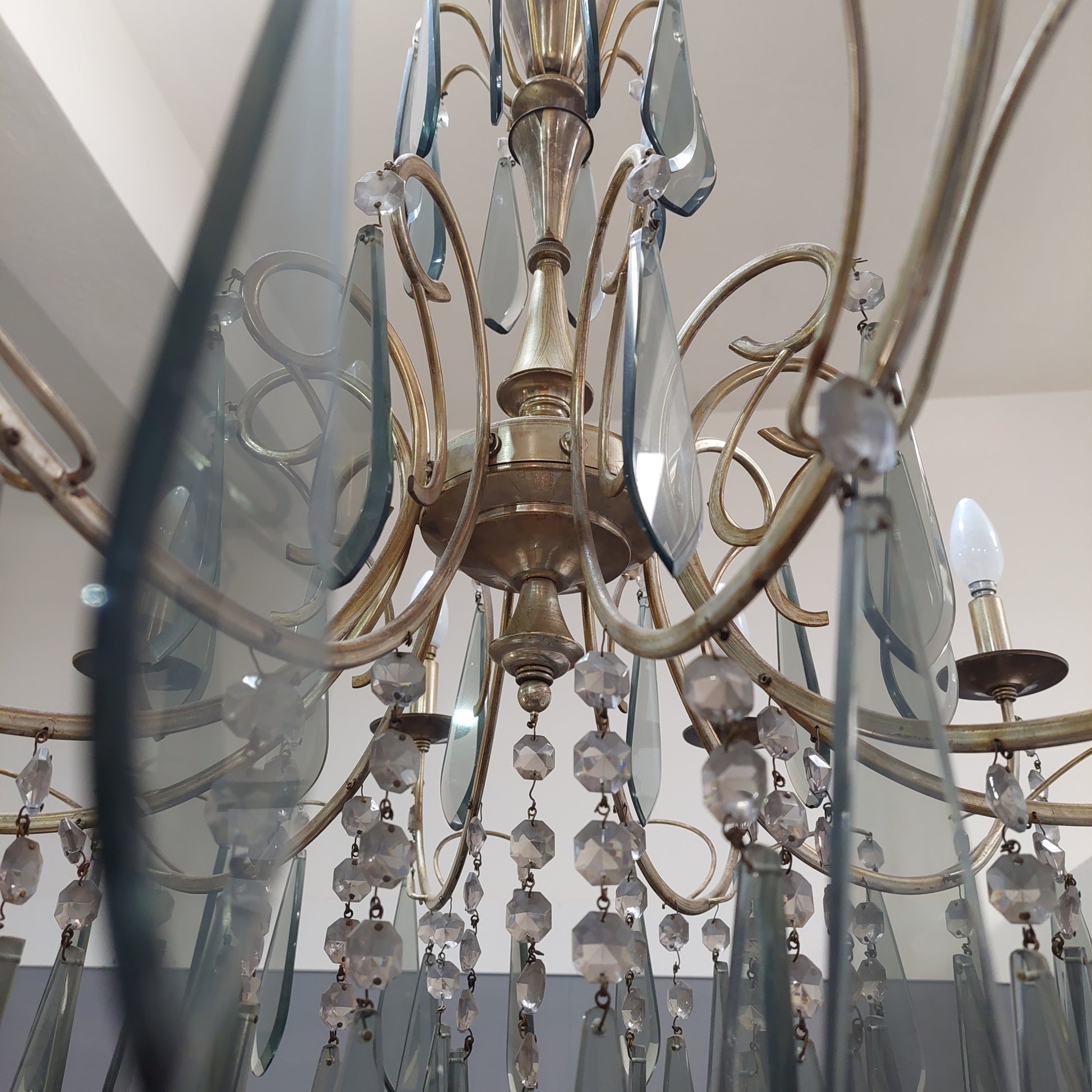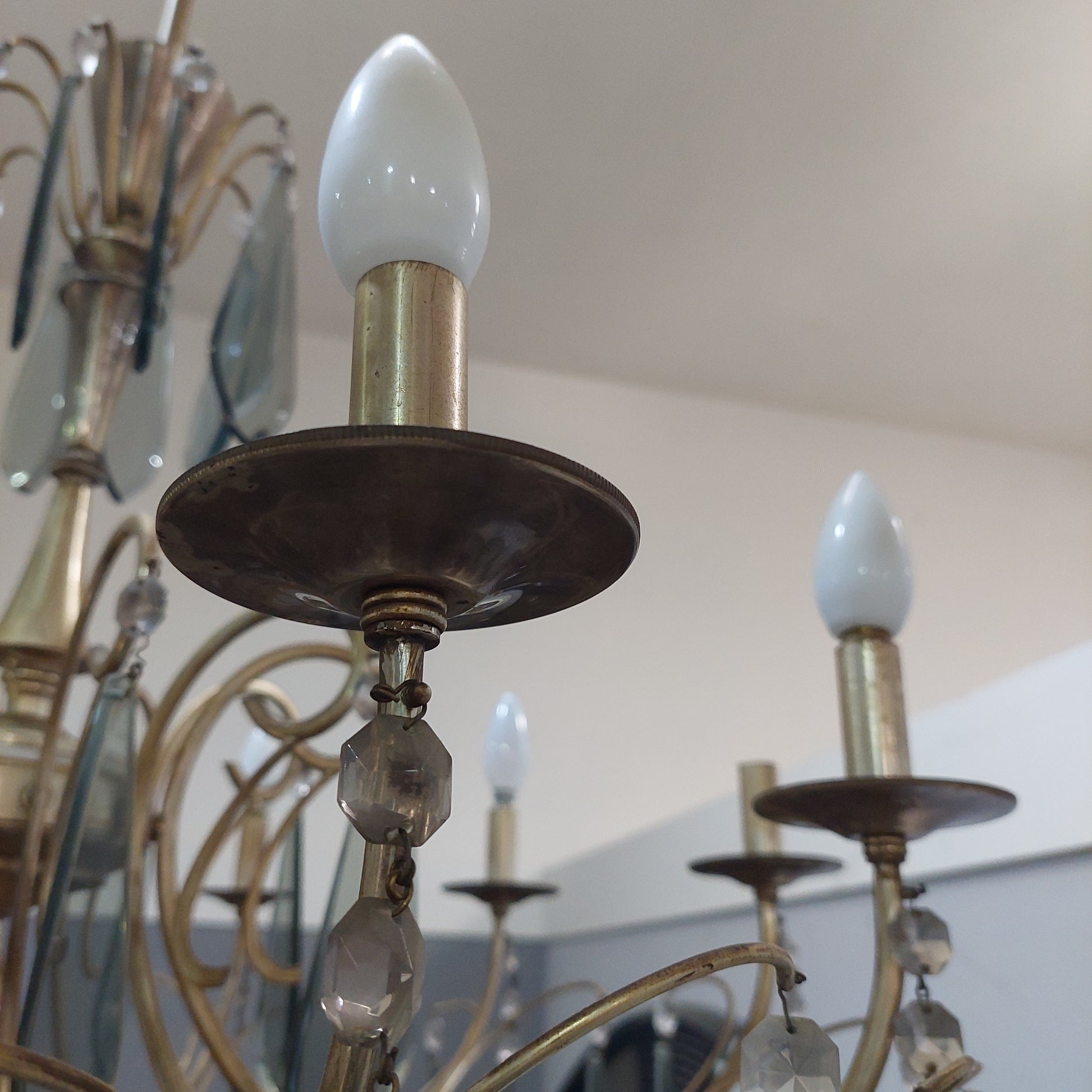 Lampadario Metallo Gocce Vetro Fume' Anni 70 10/luci
