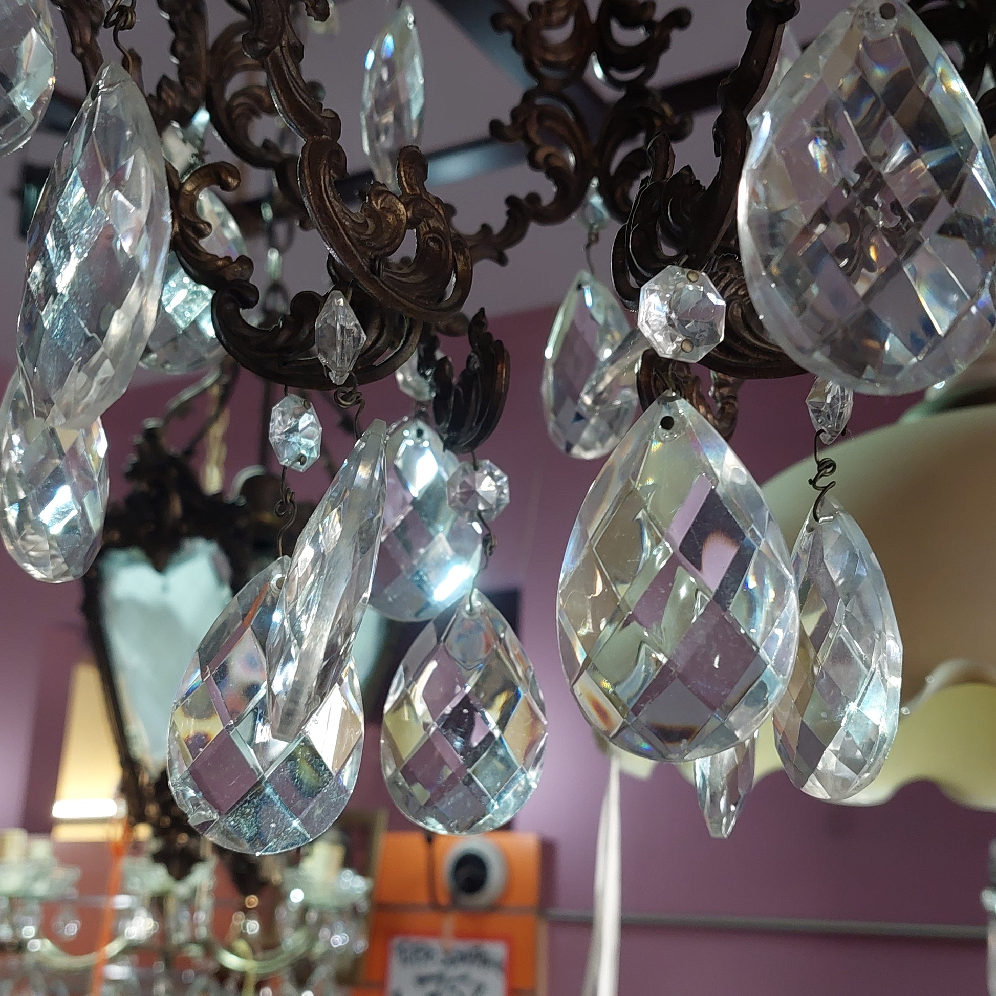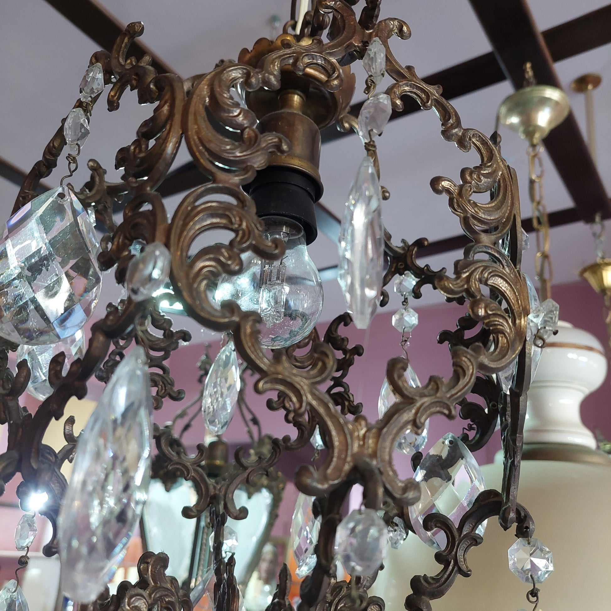 Lampadario ottone con gocce in cristallo 1/luce