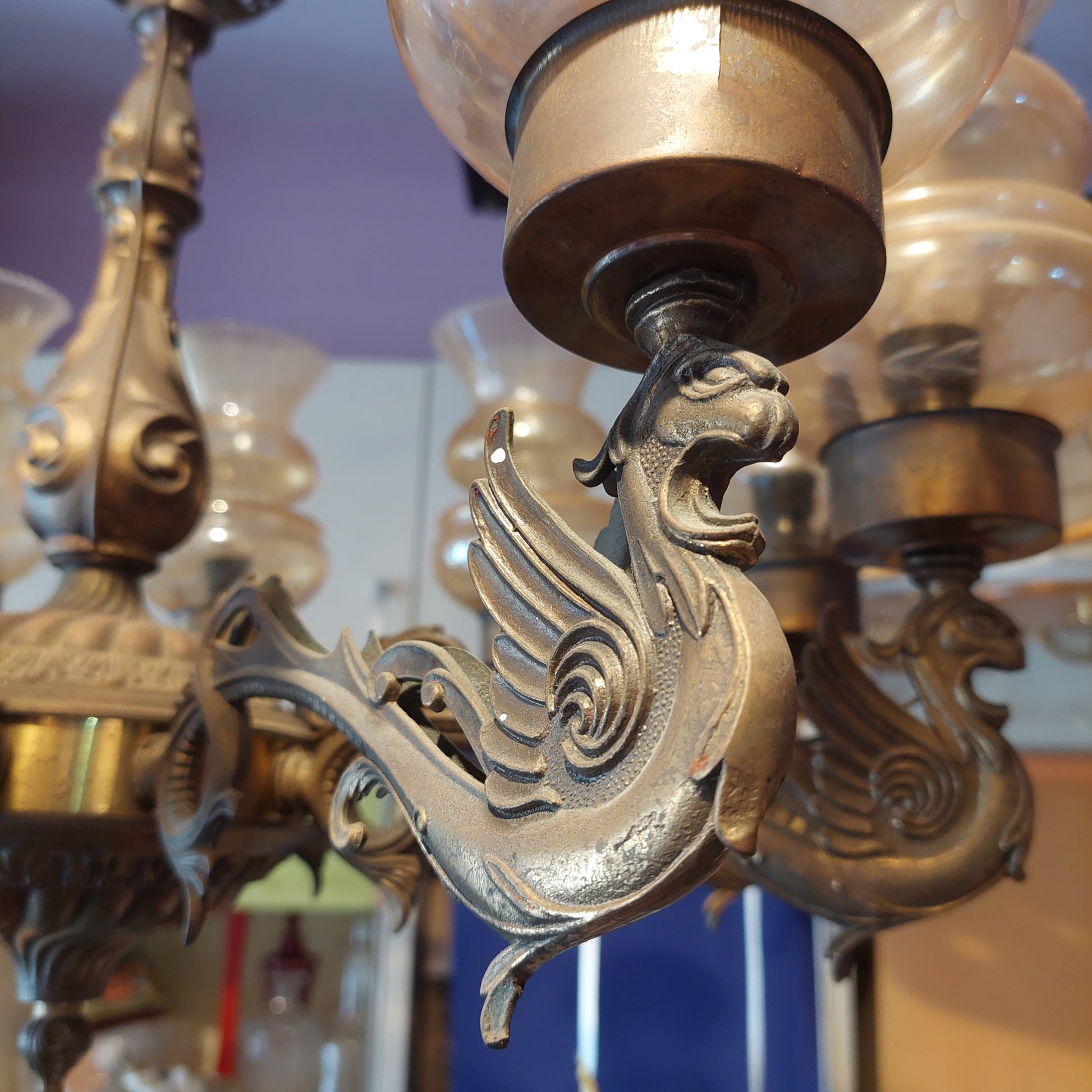 Lampadario Ottone Grifone Coppe Vetro 10/l
