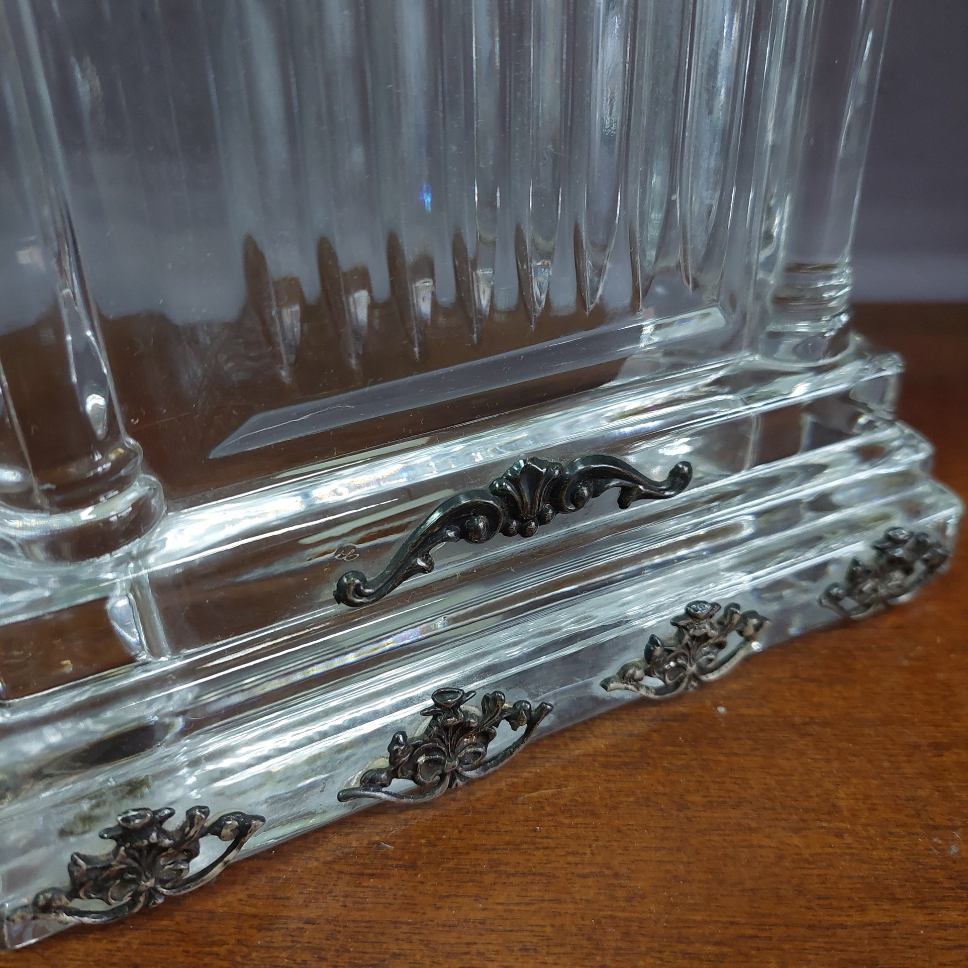 Orologio Da Tavolo Cristallo Fregi Argento