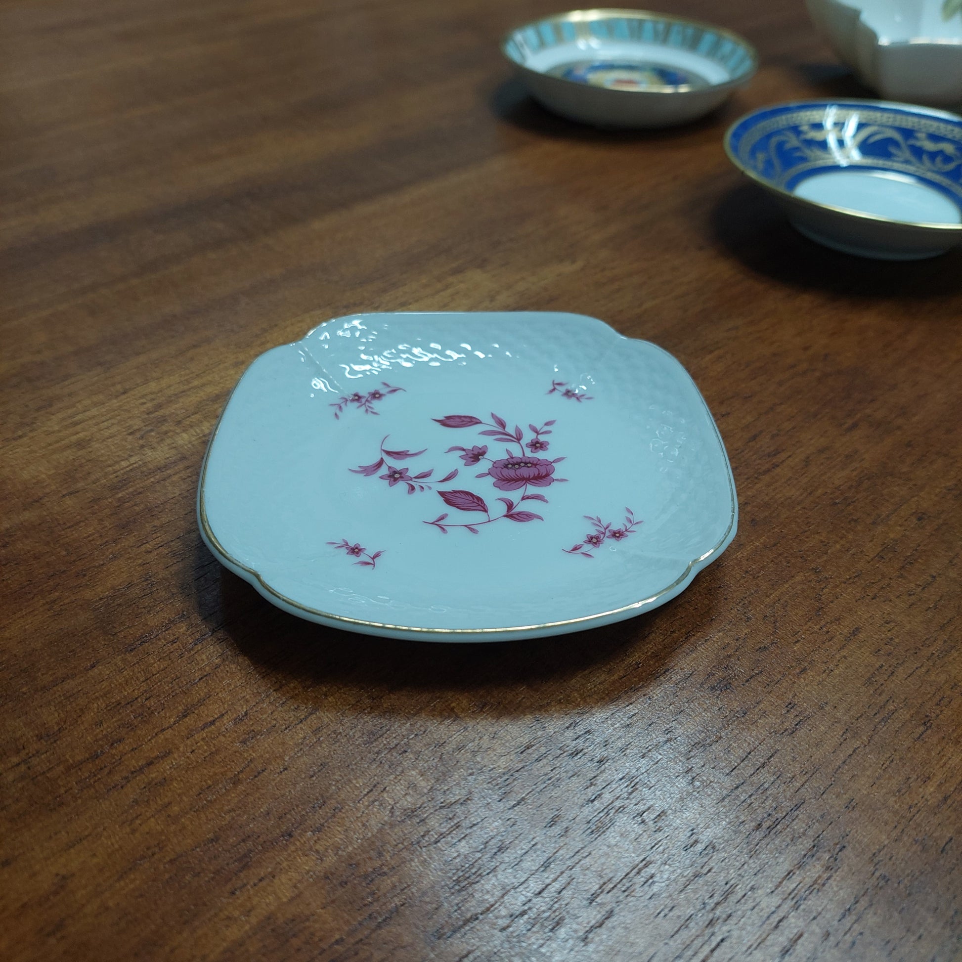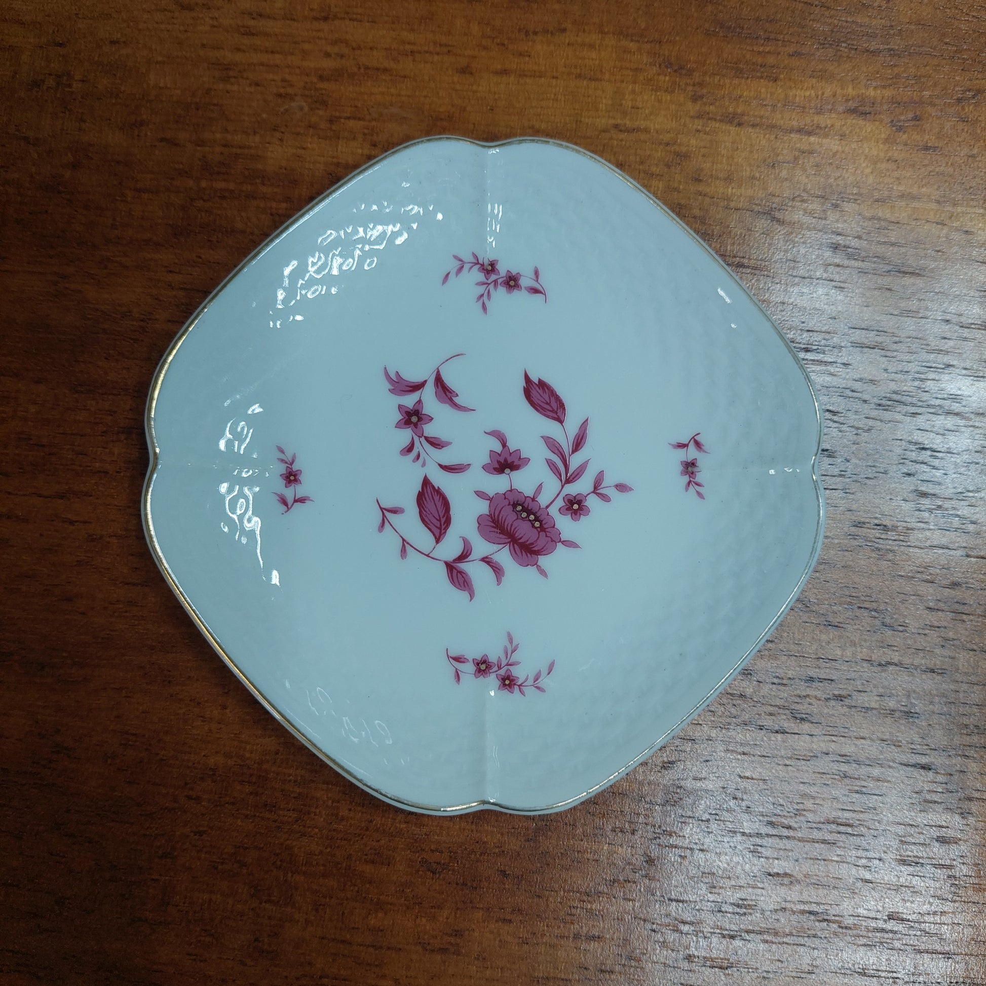 Piattino porcellana life time collection decoro fiori bordo oro cm11,5x11,5