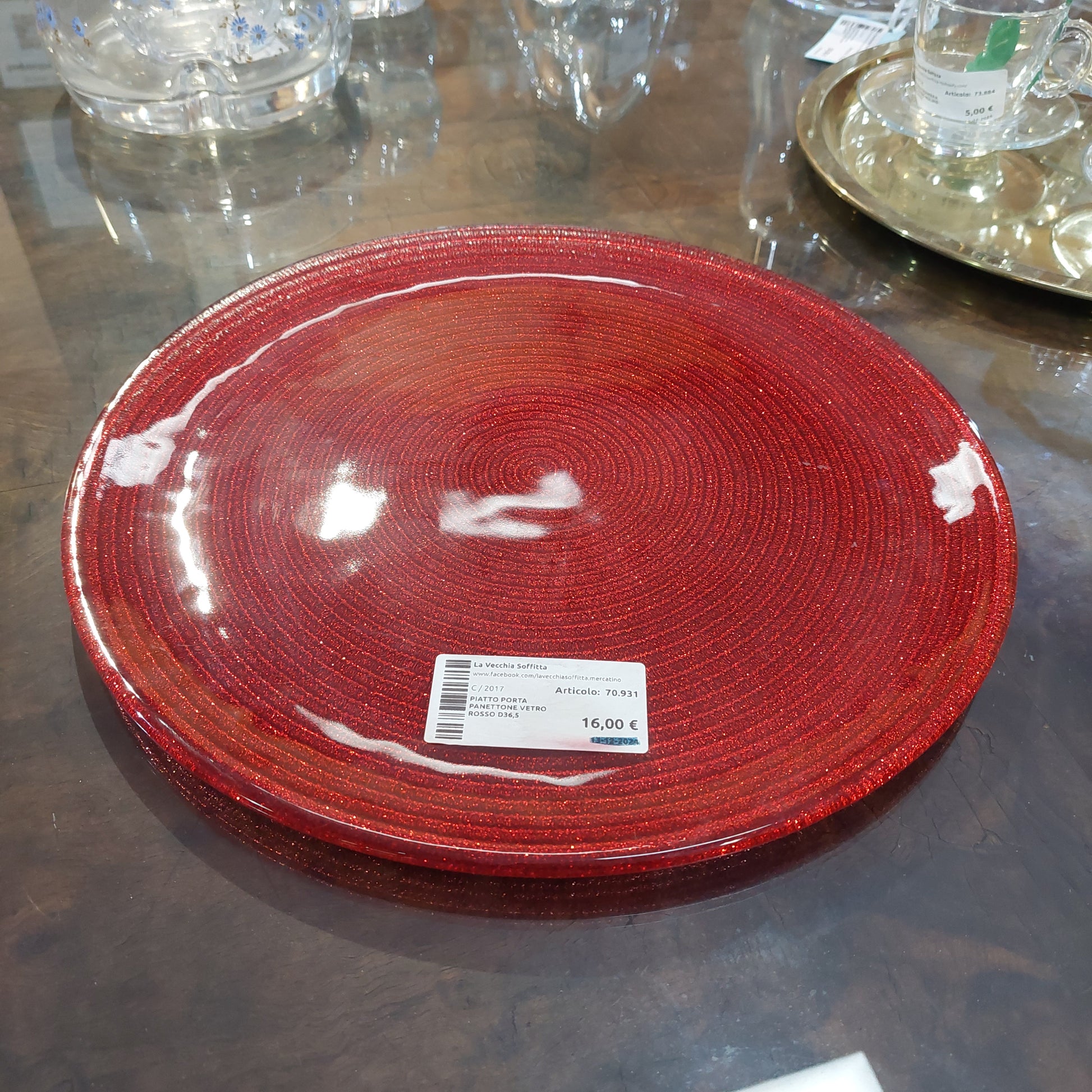 Piatto Porta Panettone Vetro Rosso D36,5