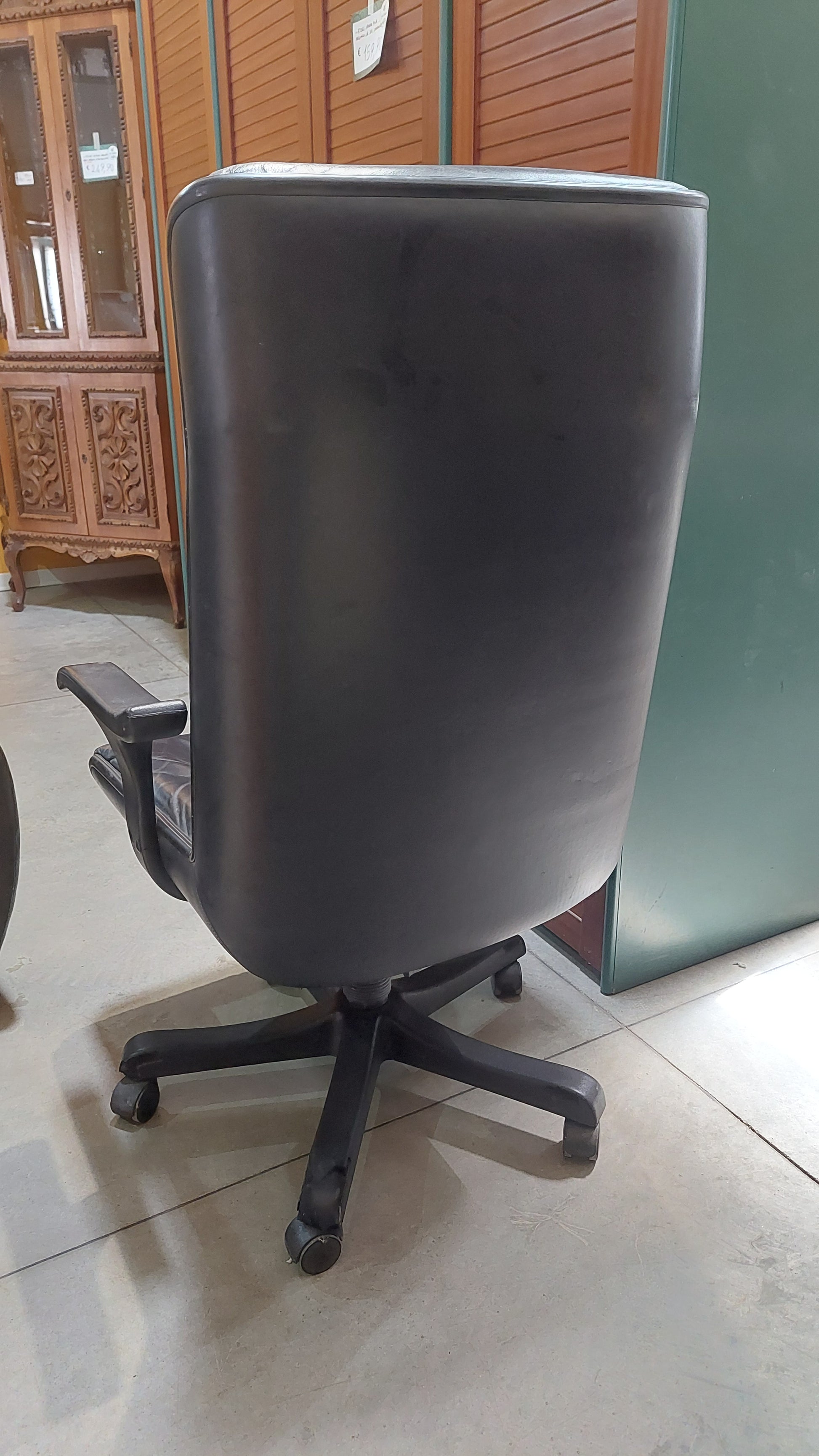 POLTRONA DA UFFICIO SCHIENALE ALTO CON BRACCIOLI,GIREVOLE IN PELLE NERA - VINTAGE -