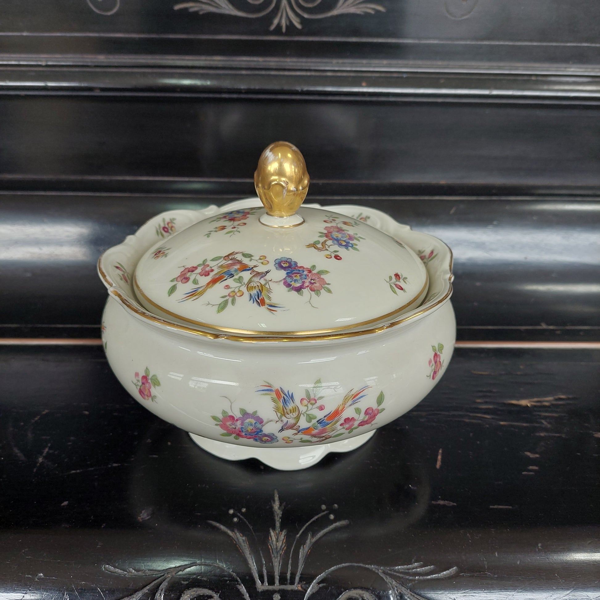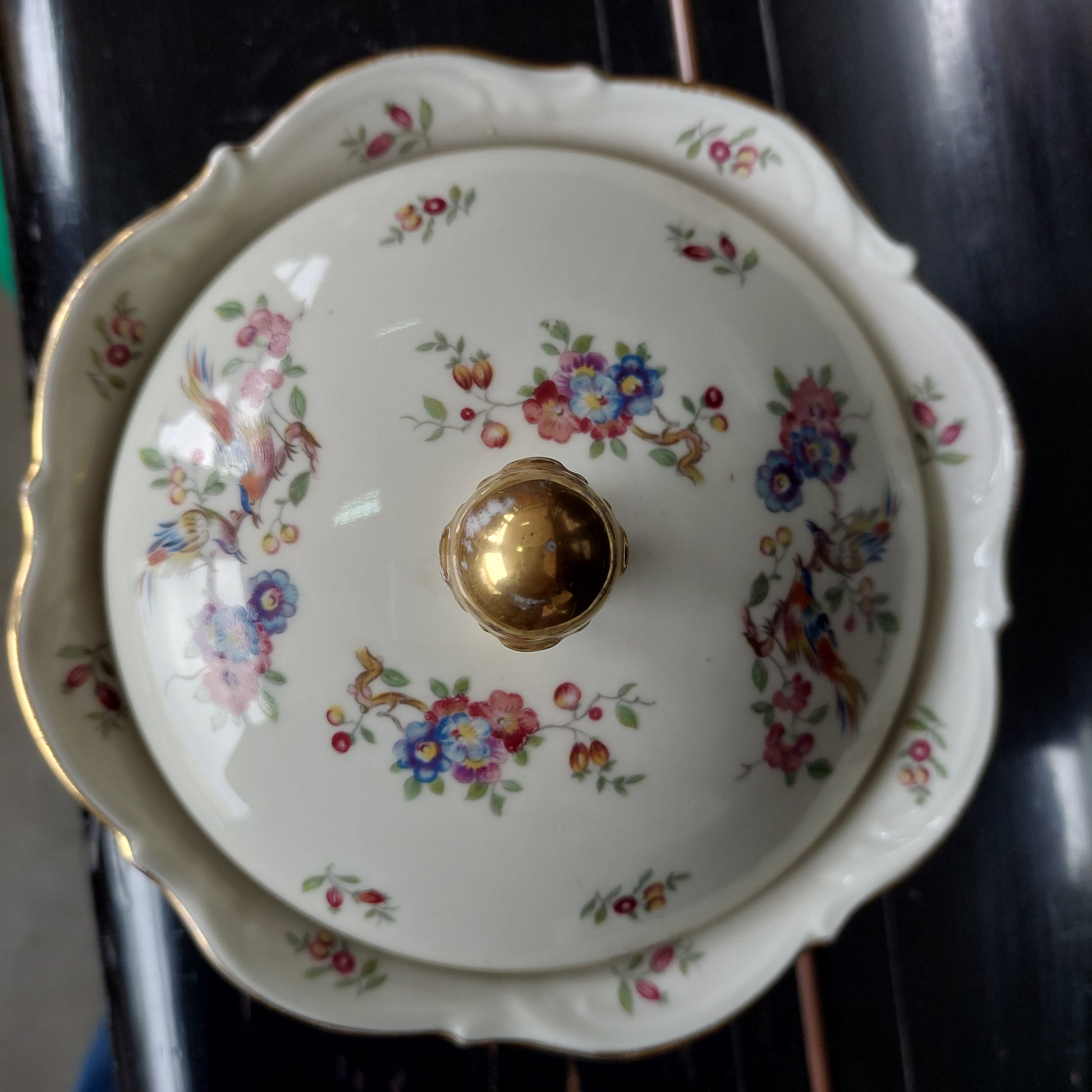 Porta bon bon porcellana* bareuther bavaria decoro fiori e bordo oro.