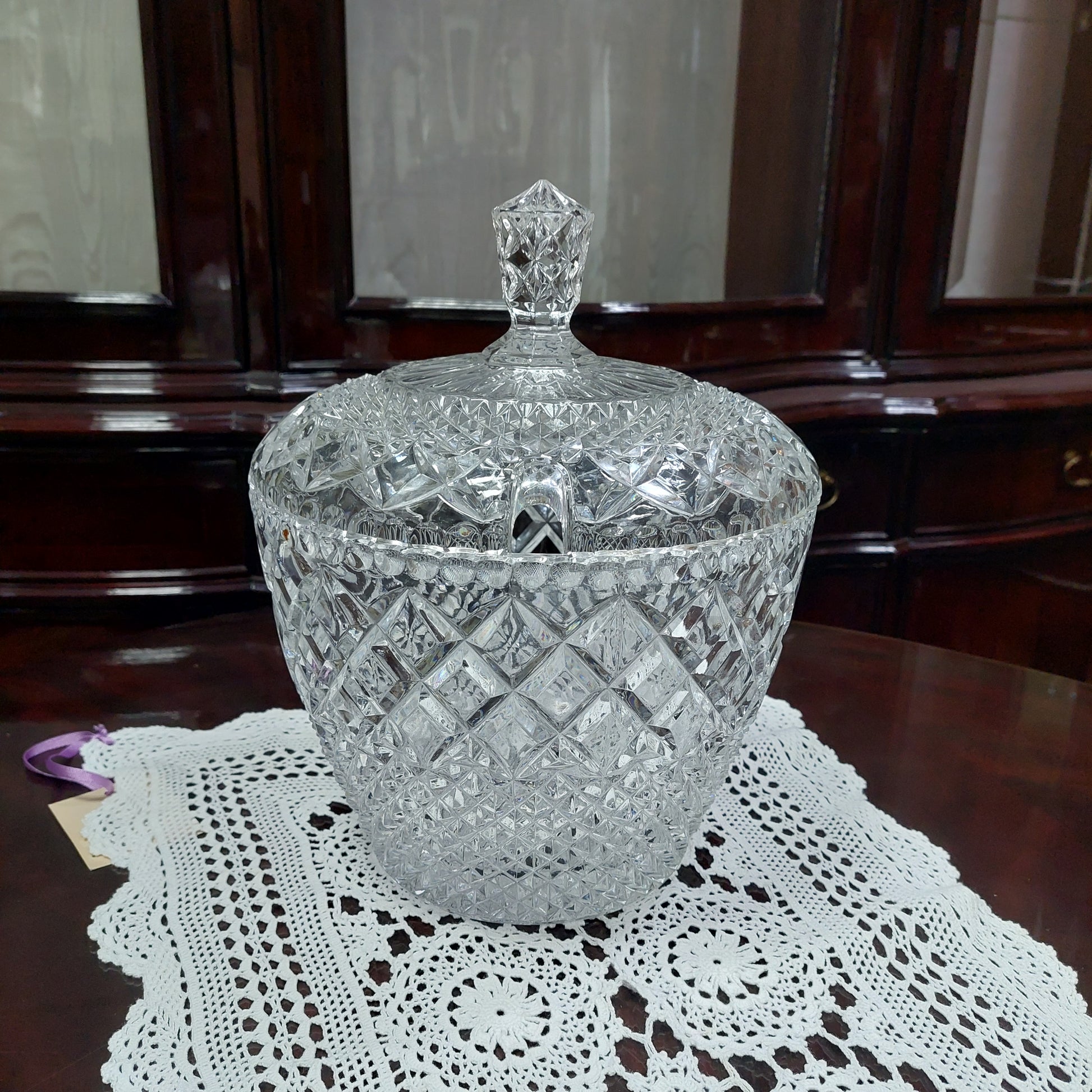 ciotola in cristallo molato con coperchio per rinfresco, aperitivo, punch, sangria