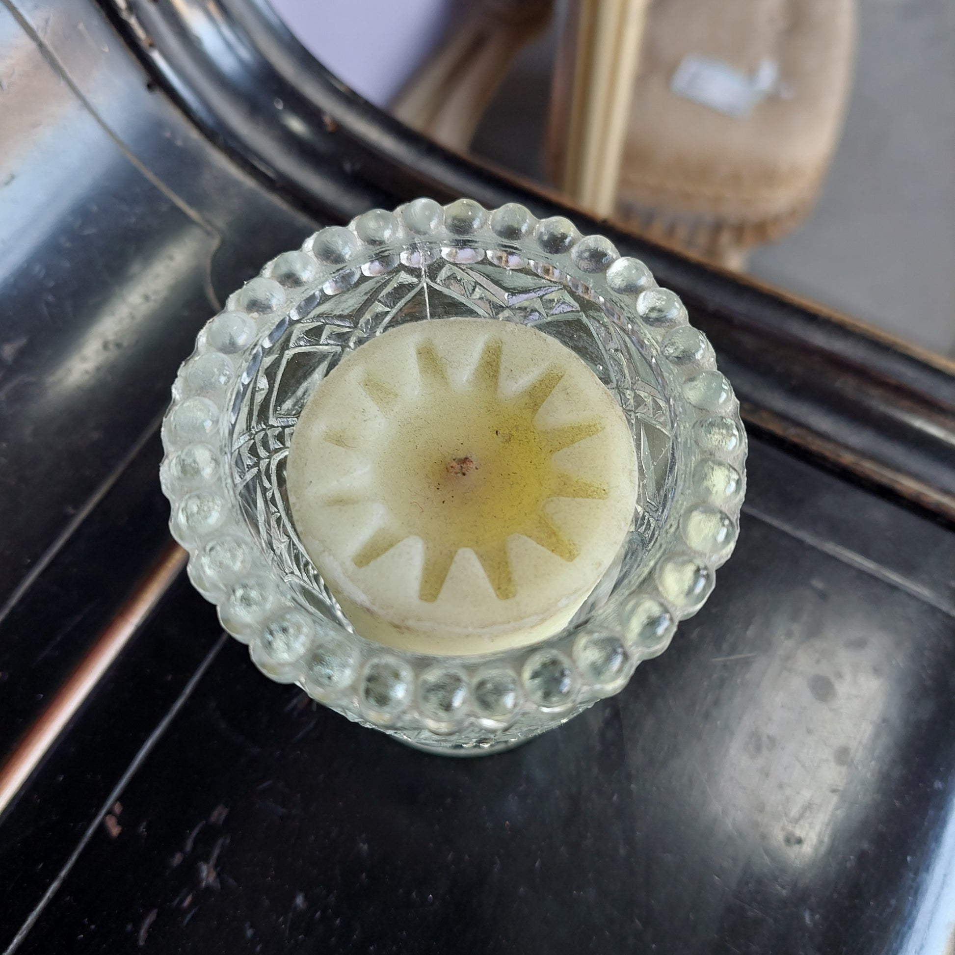 portacandela vetro stile veneziano con candela, misure cm7x7,5