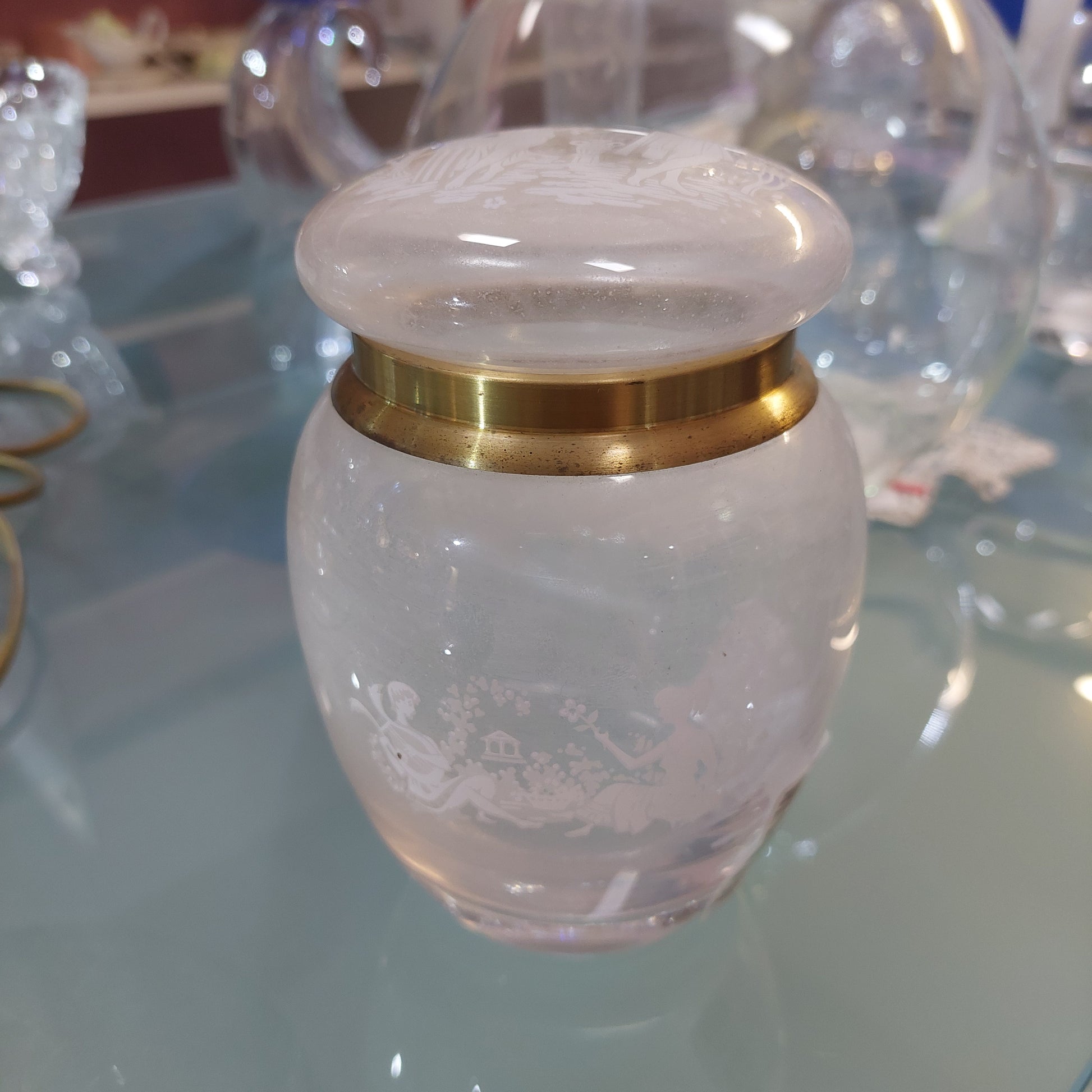 Potiche Cristallo/ottone Decoro stile Greco H15