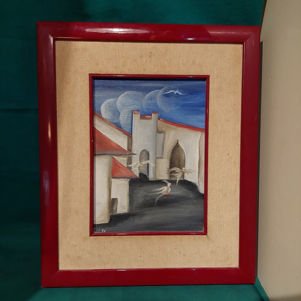 case Con Uccelli Olio Su Tela Numerato/firmato Cm31x37