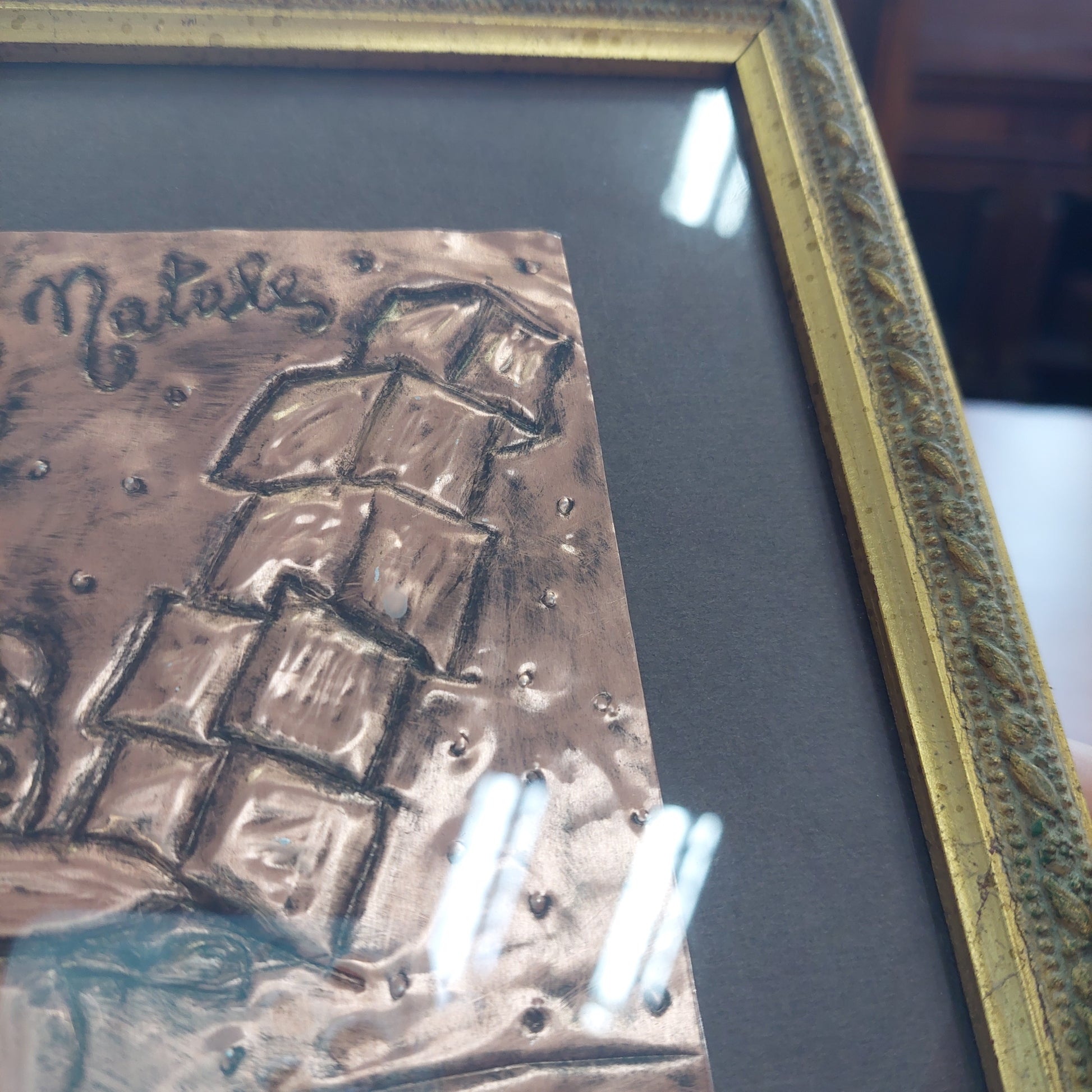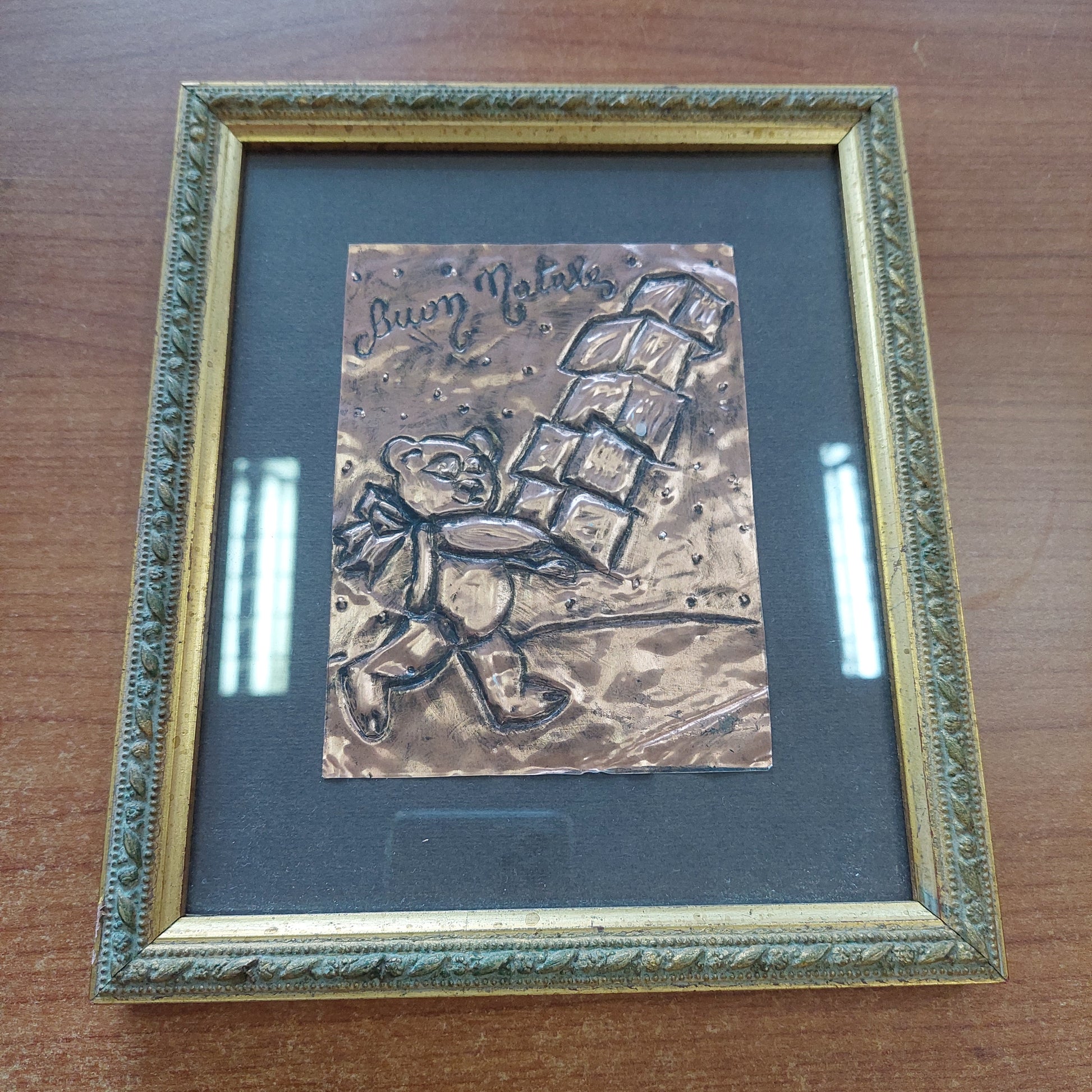 Quadretto Buon Natale Su Rame Cornice Dorata