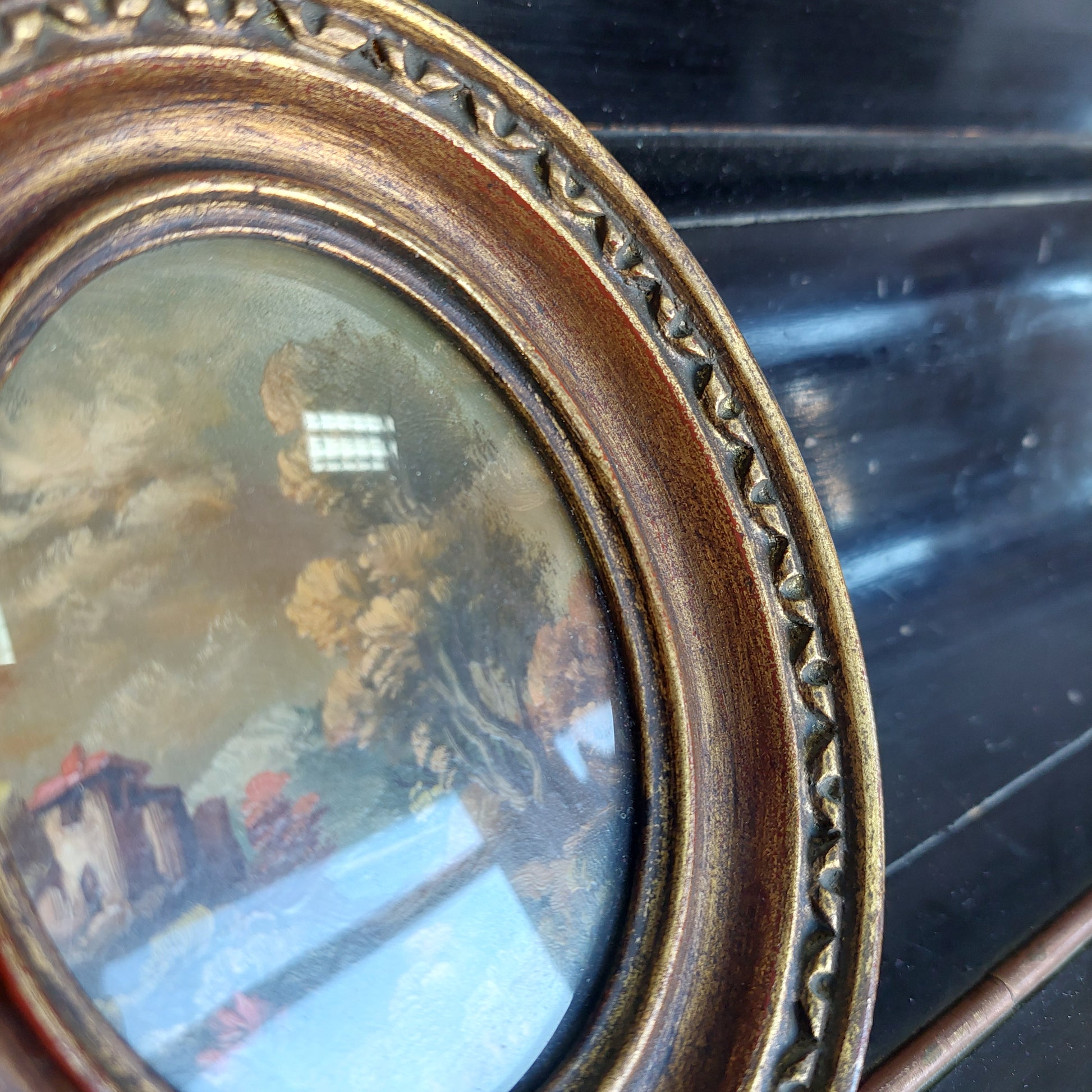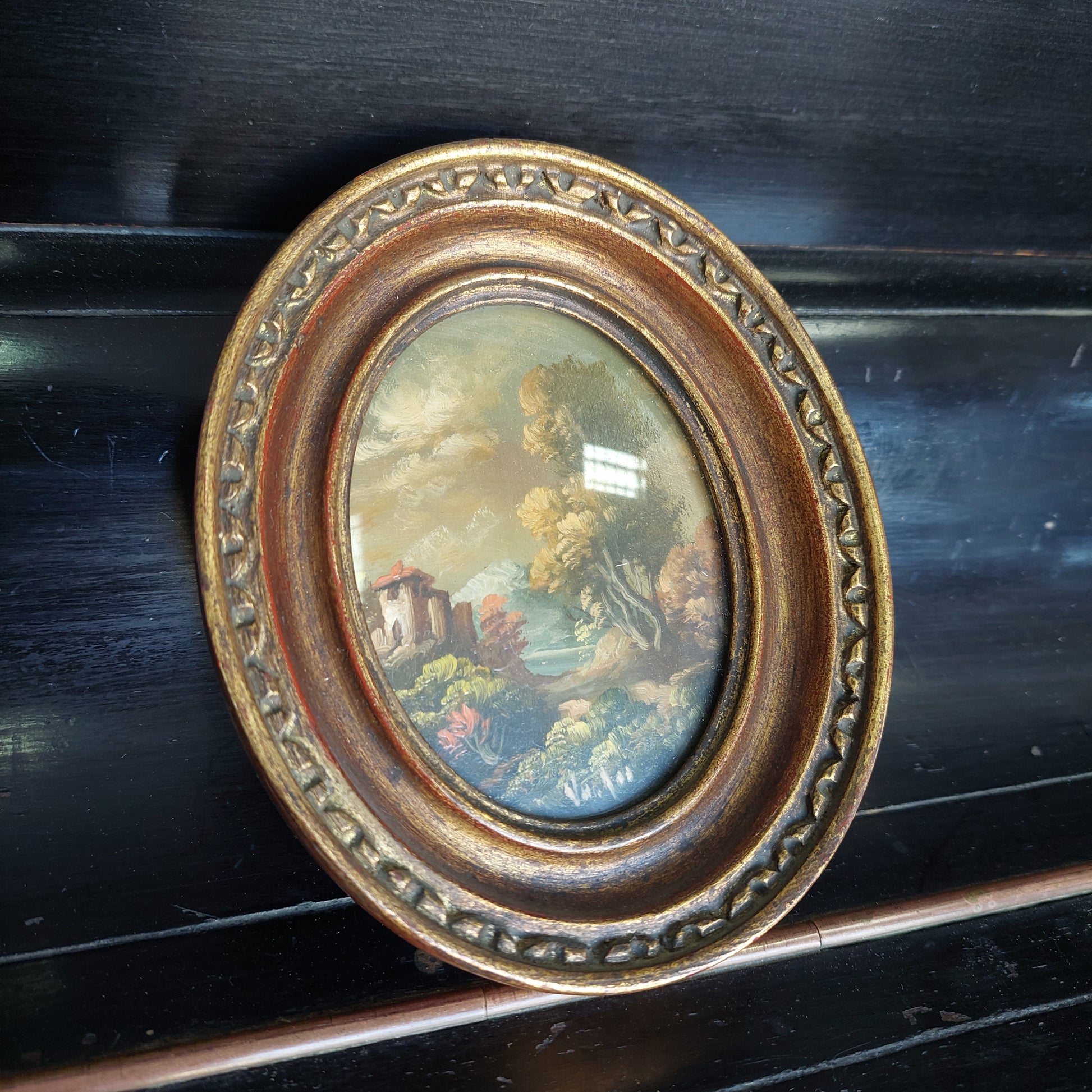 Quadretto Ovale Paesaggio Dipinto Olio Su Tela cornice ovale dorata cm10,5x13