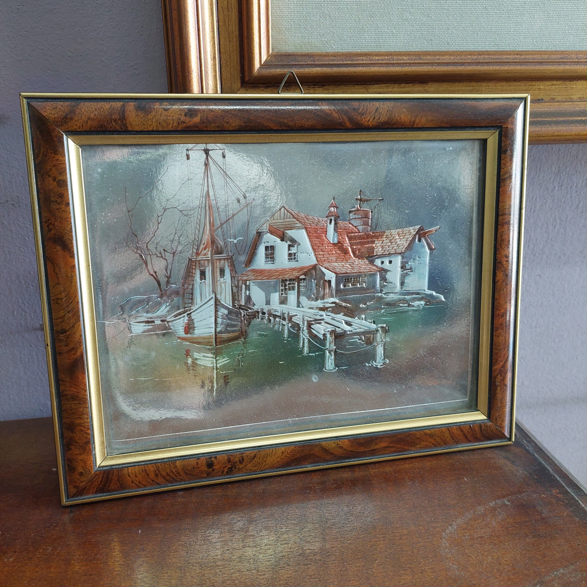Quadretto Porticciolo Su Lastra Argentata Cm23,5x18,5