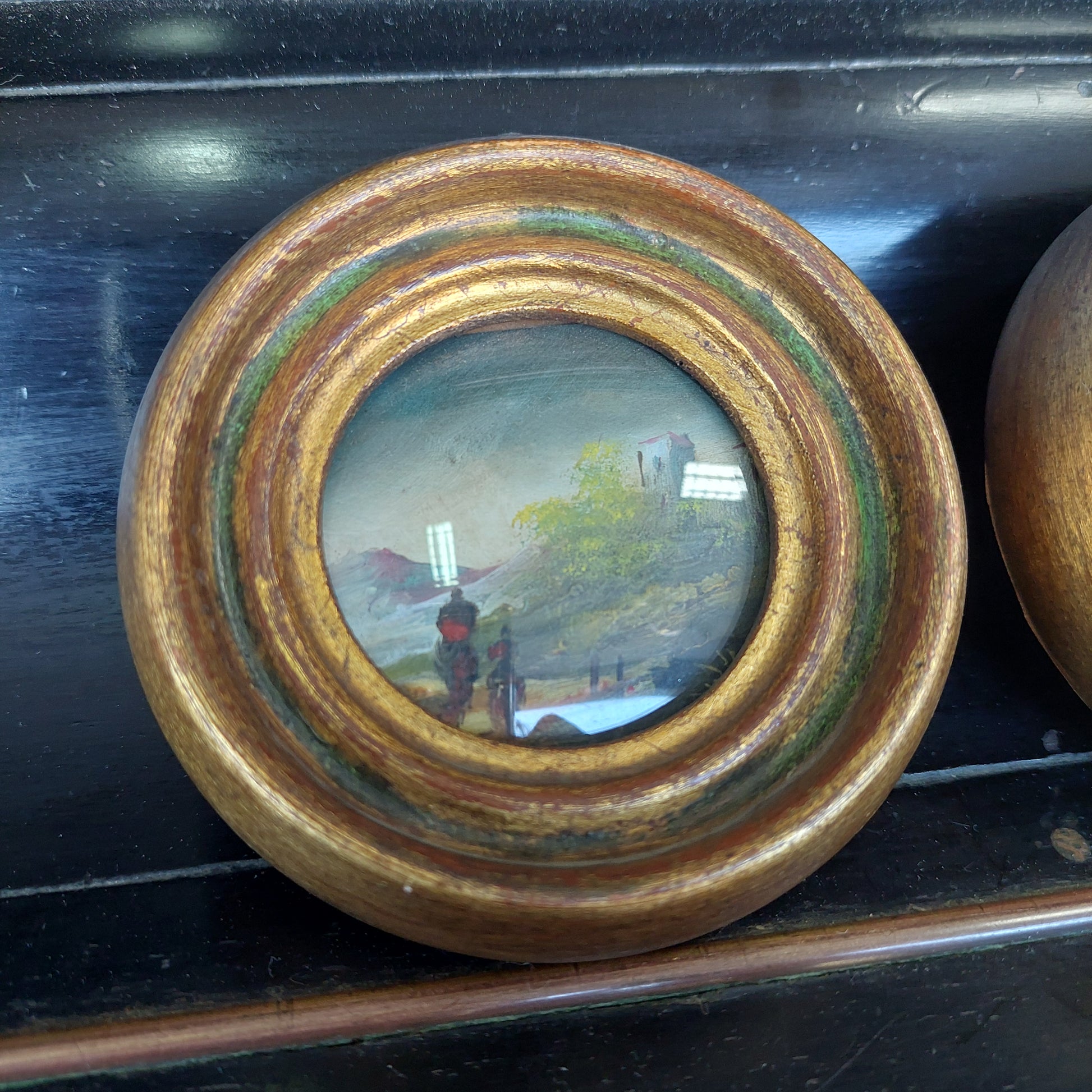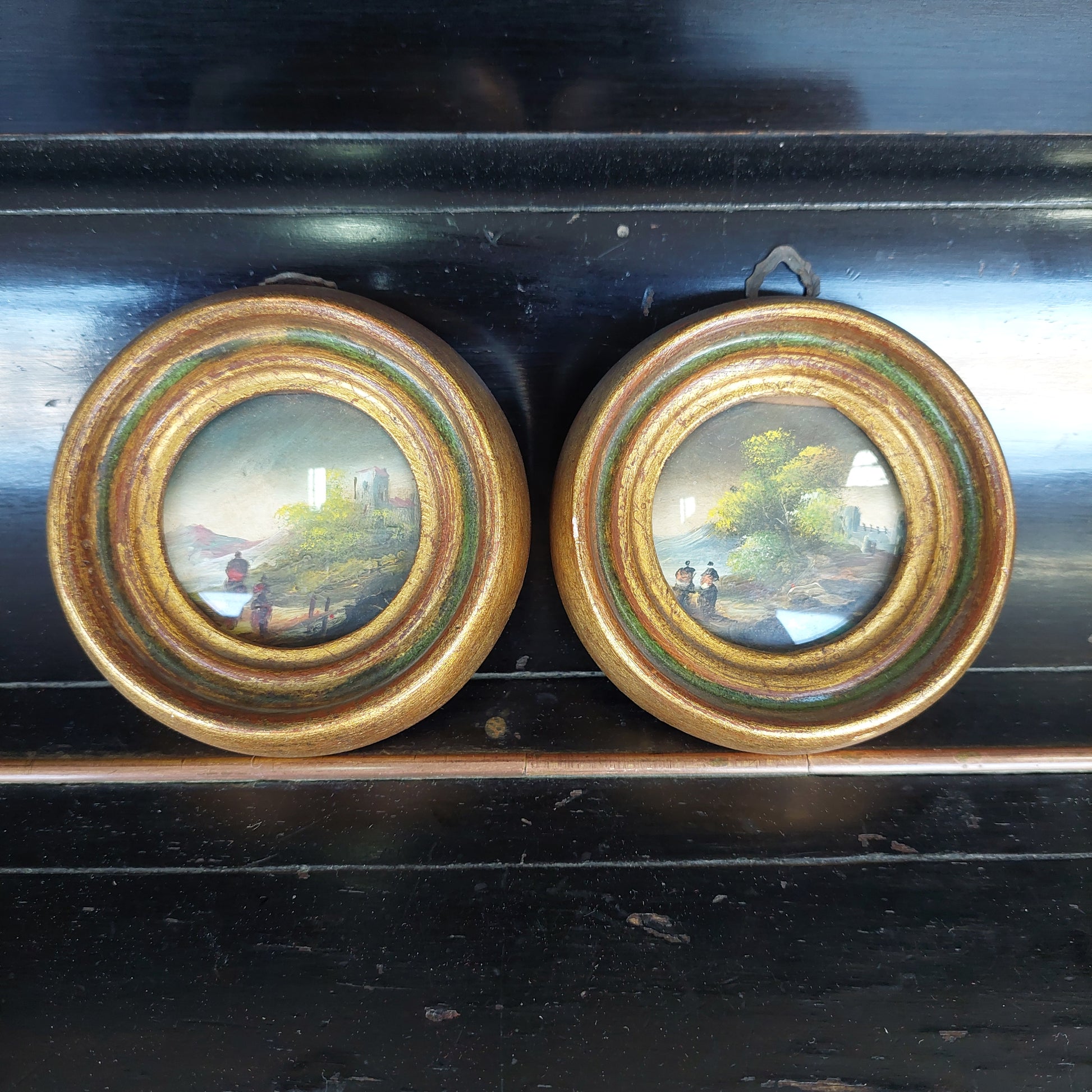 Coppia Quadretti Tondo Paesaggio Dipinto Olio Su Tela
