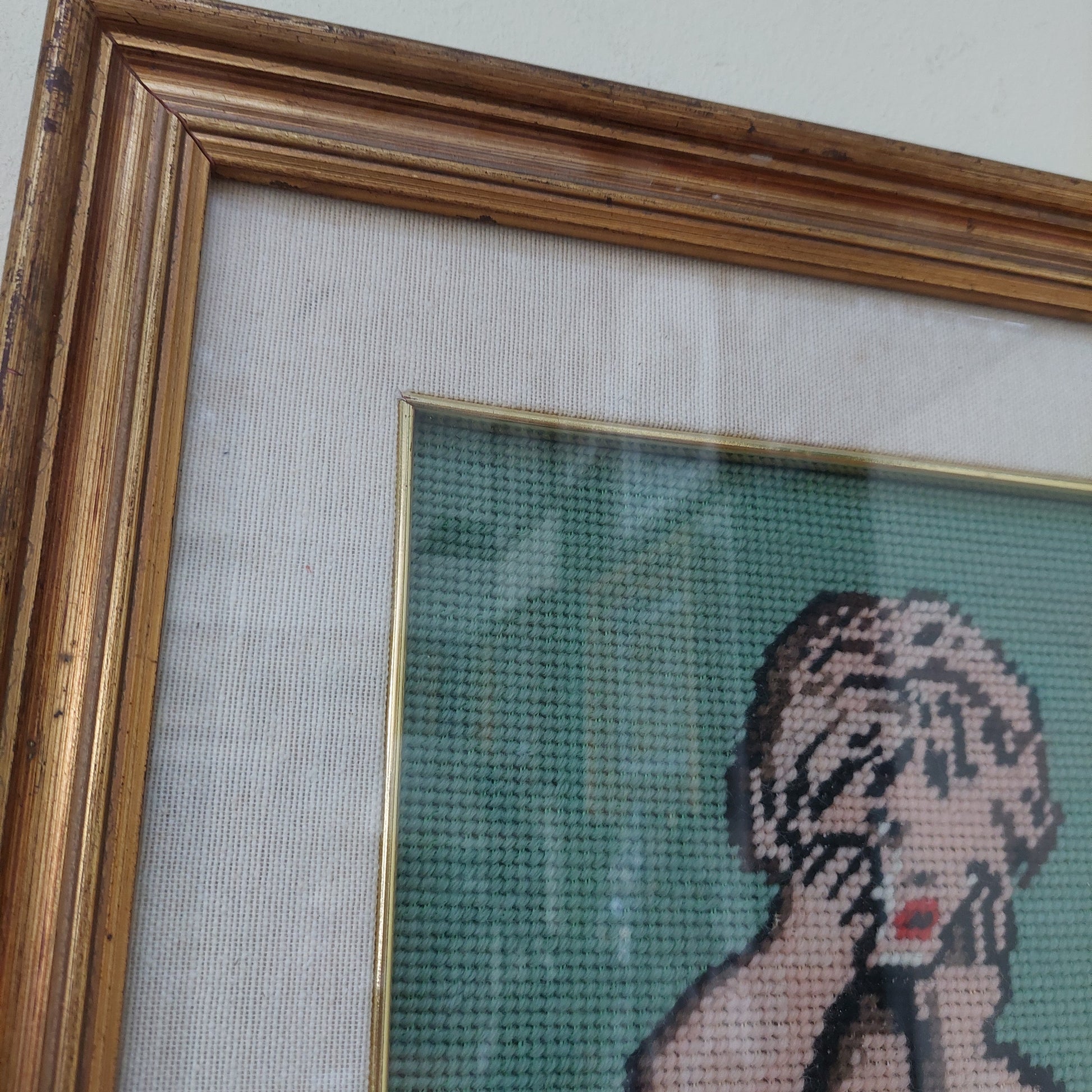 Quadro bambino mezzopunto cornice legno oro cm33x42
