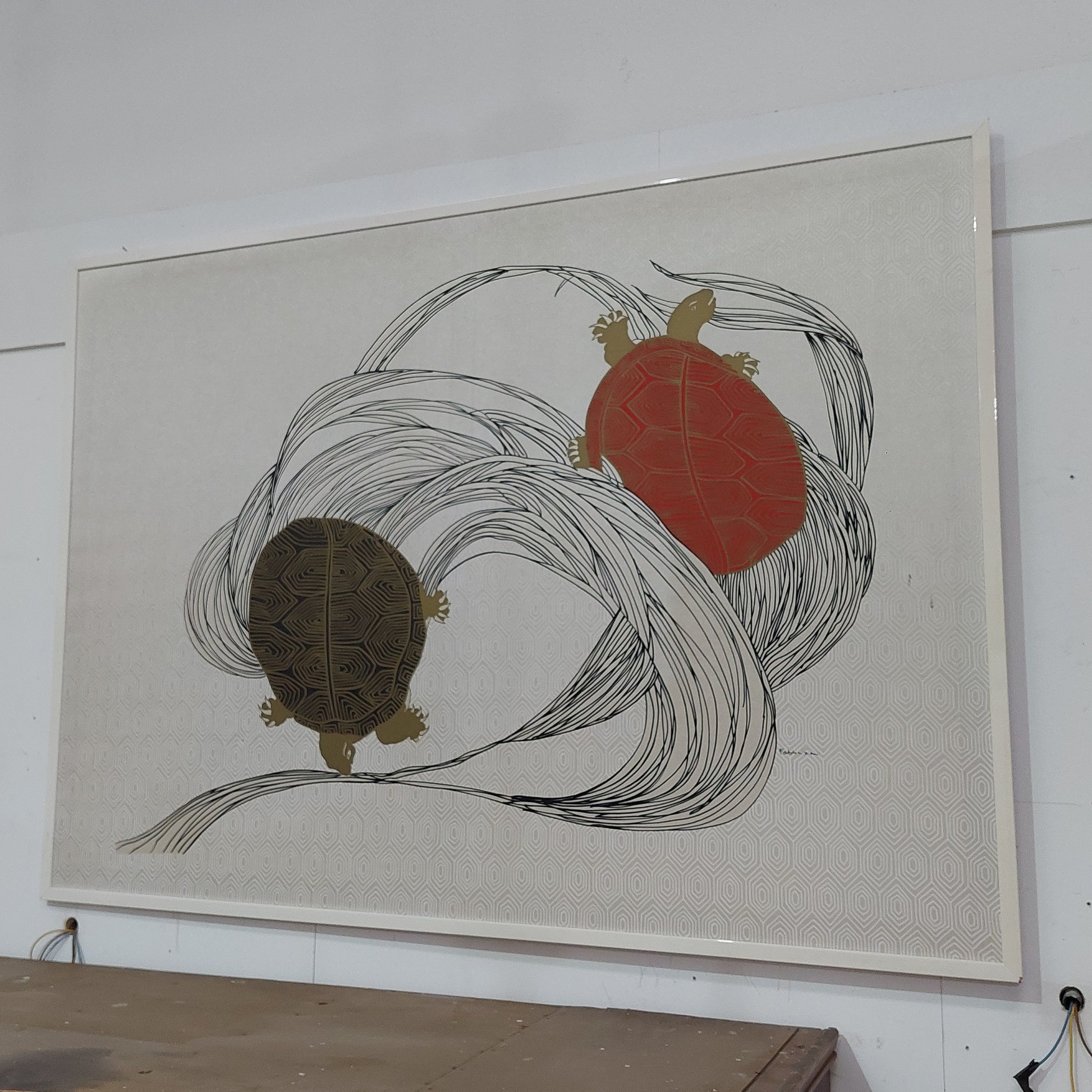 QUADRO BATIK SU SETA TARTARUGHE FIRMATO FABBRIZIANI CM143X102