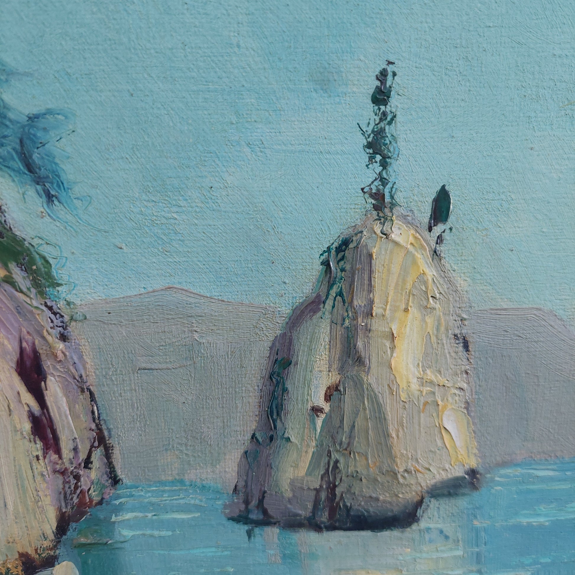 Quadro Faraglioni del Lario Lago di Como olio su tela firmato Tozzo, cornice antica legno dipinta