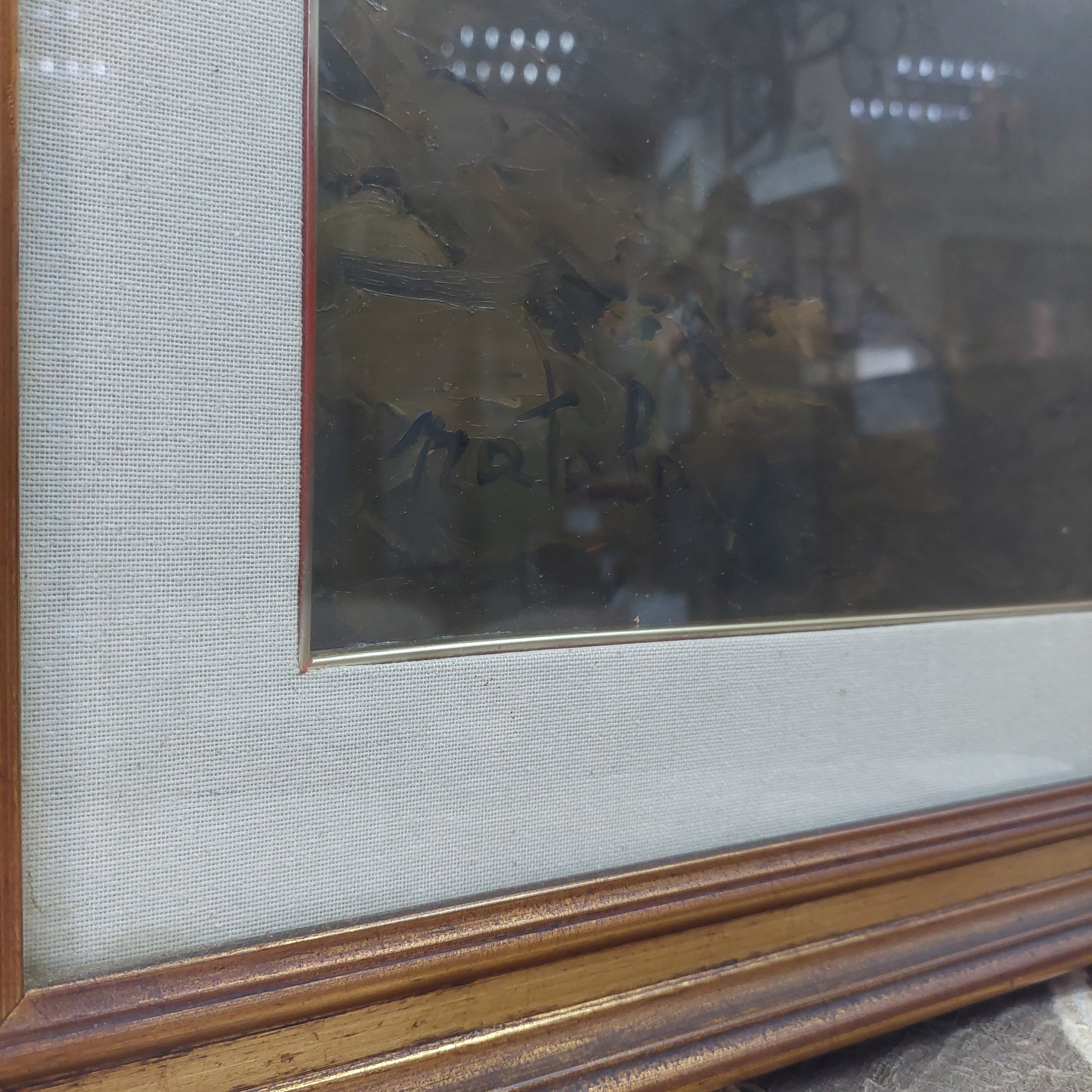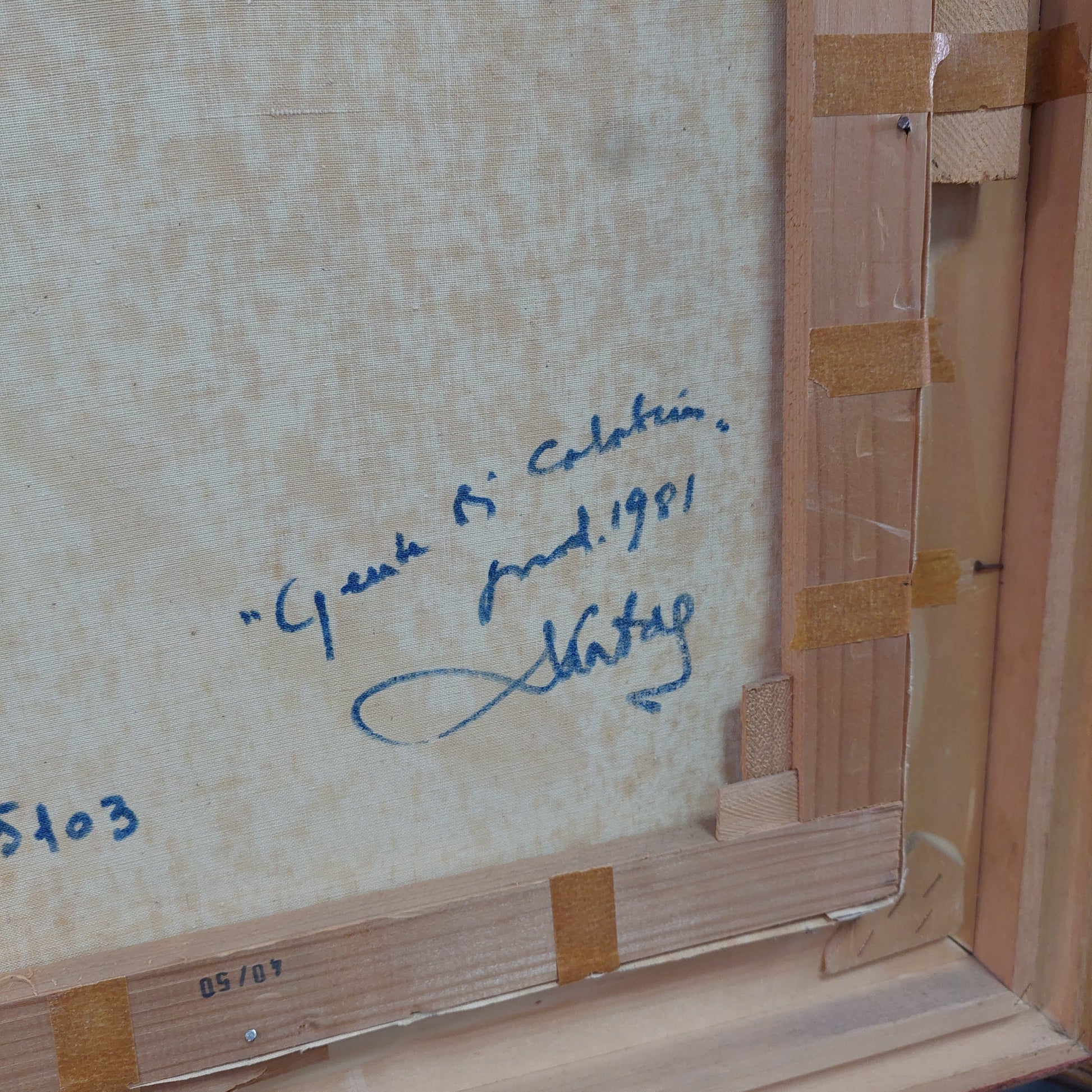 Quadro Gente di Calabria firmato Natale 1981 olio su tela, cornice legno cm59x69