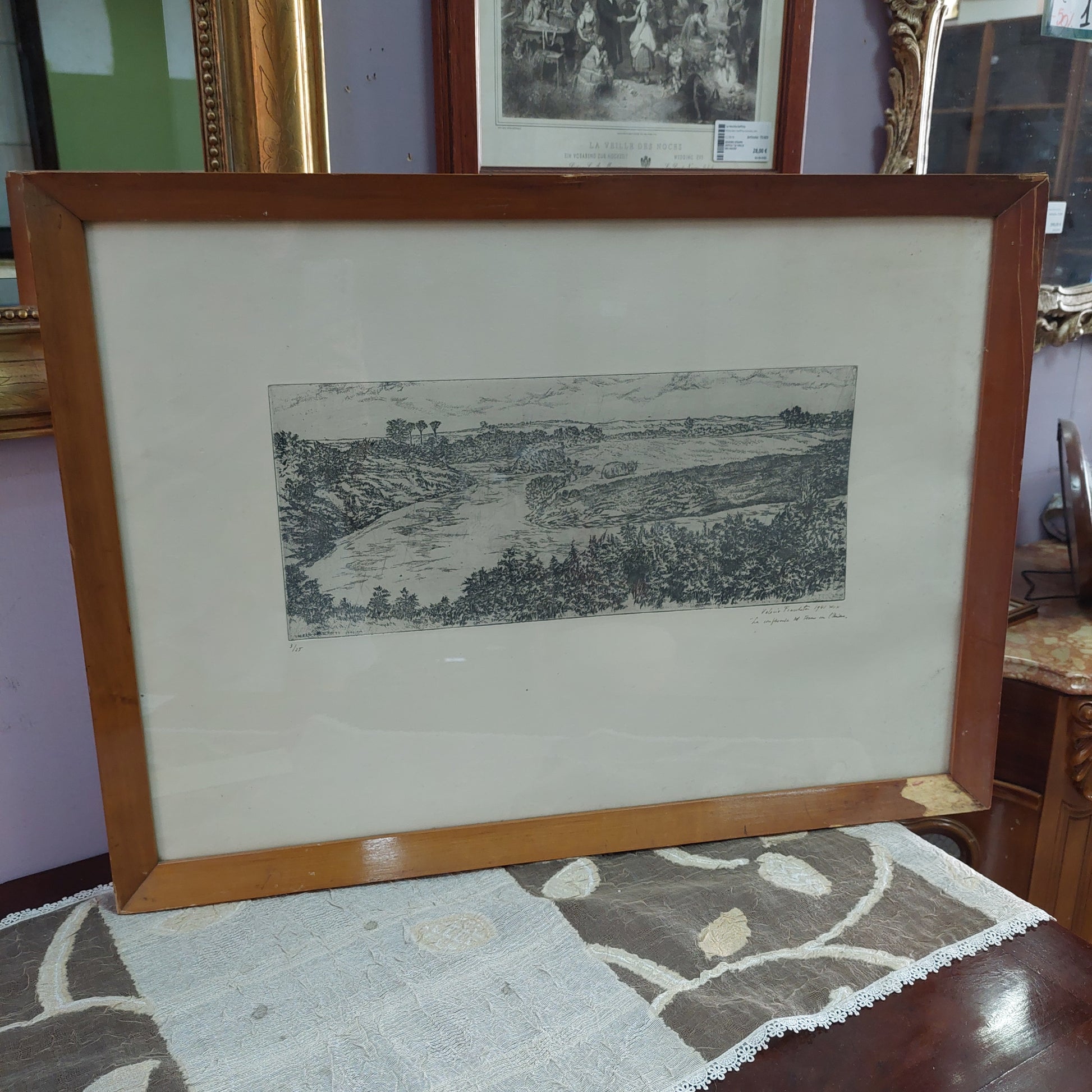 Quadro Litografia acquaforte "La confluenza del Tevere nell'Aniene" di Valerio Fraschetti 3/25