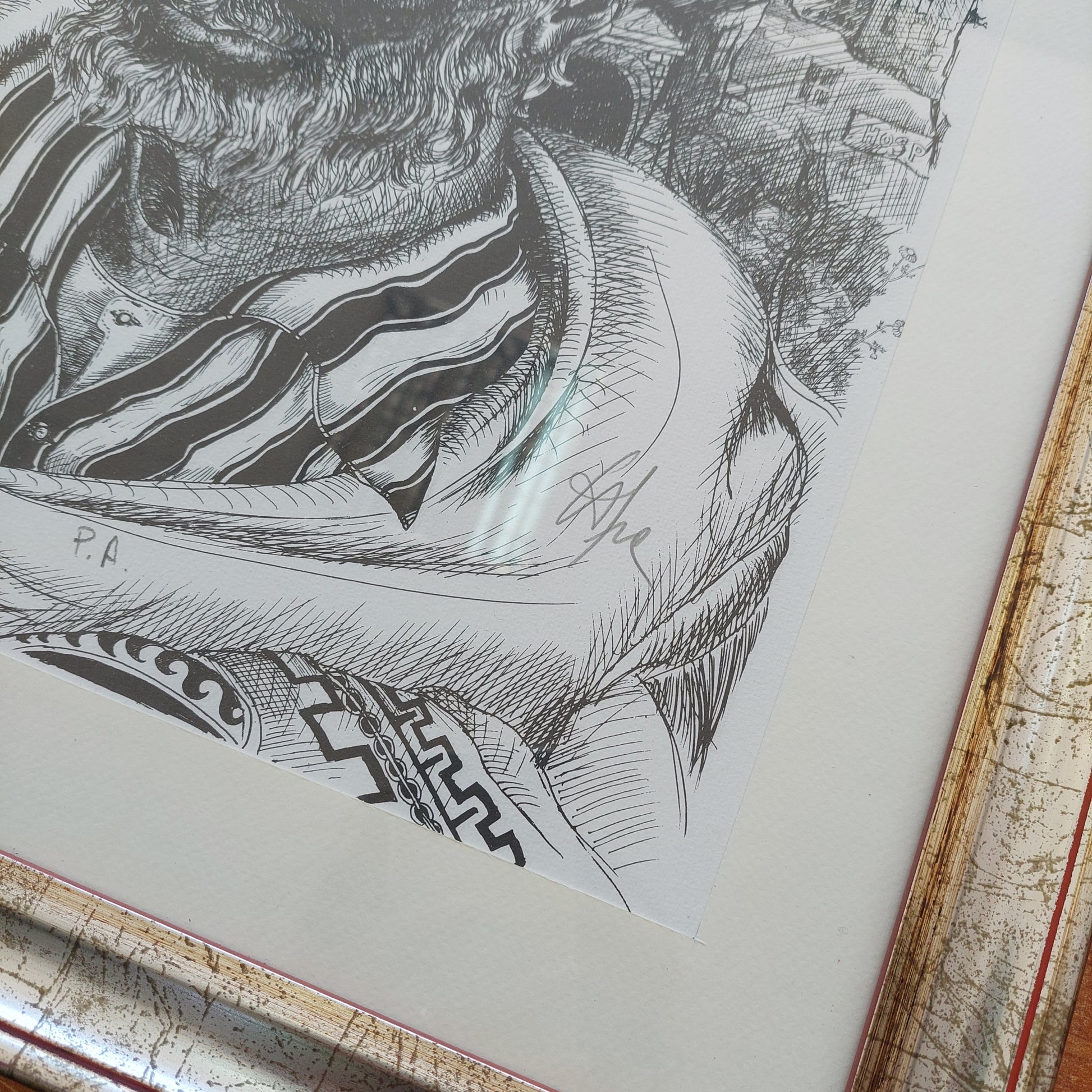 Quadro P.A. ritratto di anziano a china firmato cornice misure cm48x56