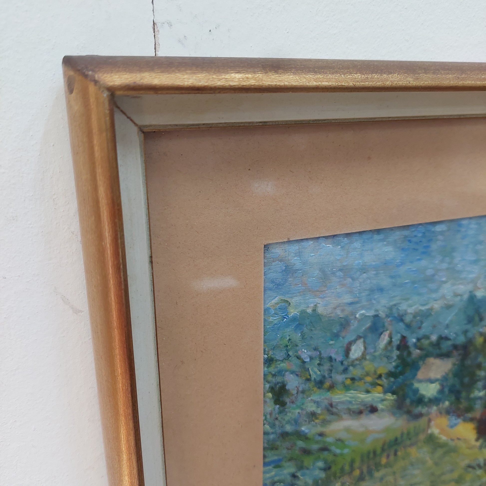 Quadro paesaggio con case olio su tela cm41,5x30,5